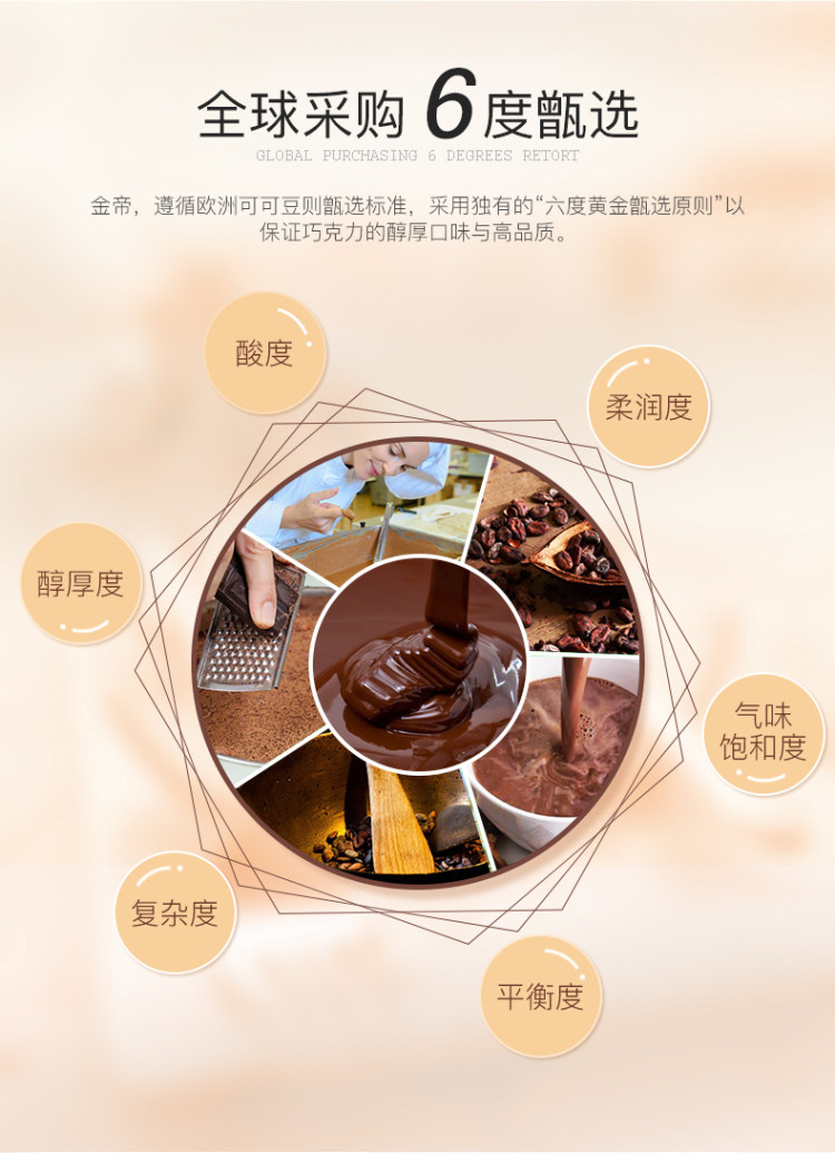 天猫金帝旗舰店39.8元,可领15元优惠券,实付24.8元到手,甄选土耳其上等榛仁+纯可可脂 不含反式脂肪酸。香浓酥脆,口感香浓,绵软榛子浆夹心,甄选土耳其上等榛仁,由瑞士巧克力大师亲自调制,造就了至浓至淳的欧洲经典巧克力,每一刻巧克力都是精心的浓缩,多层口感让美味碰撞升级。