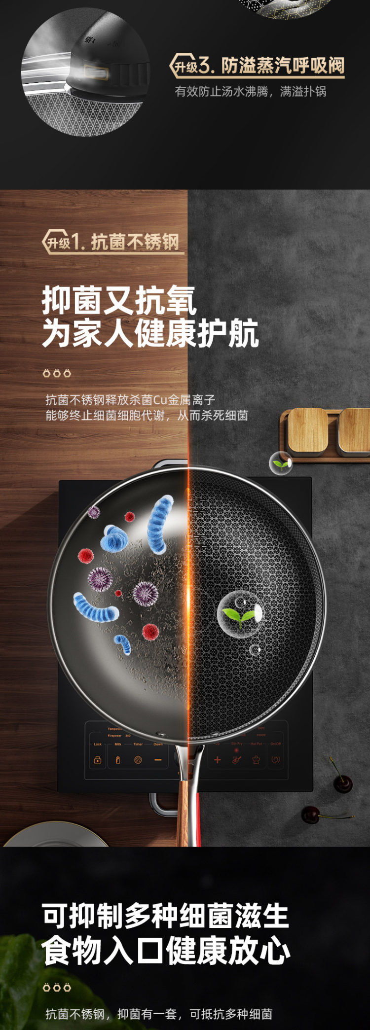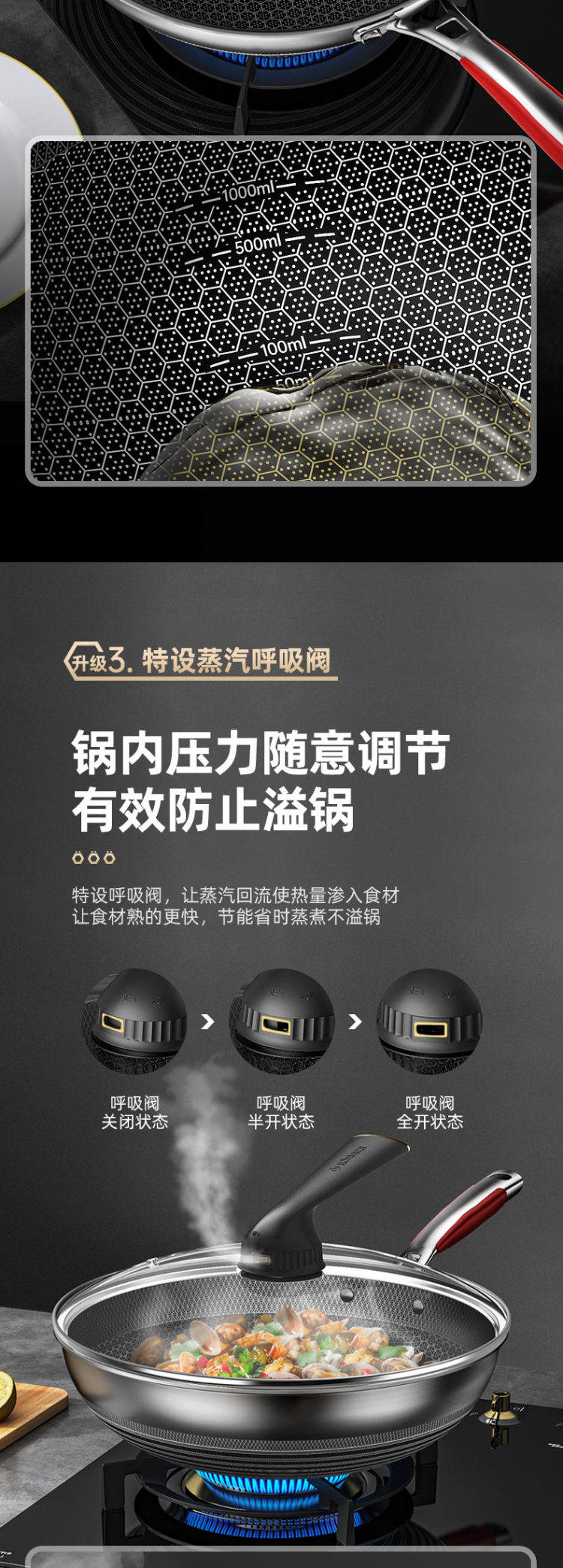 升级蜂窝纹理,防粘易清洗;多层复合钢一体成型,导热迅速受热均匀;特设油水位线,烹饪更简单;呼吸阀锅盖,有效防止溢锅;防刮耐磨,不惧钢铲,不挑炉灶领券链接点此