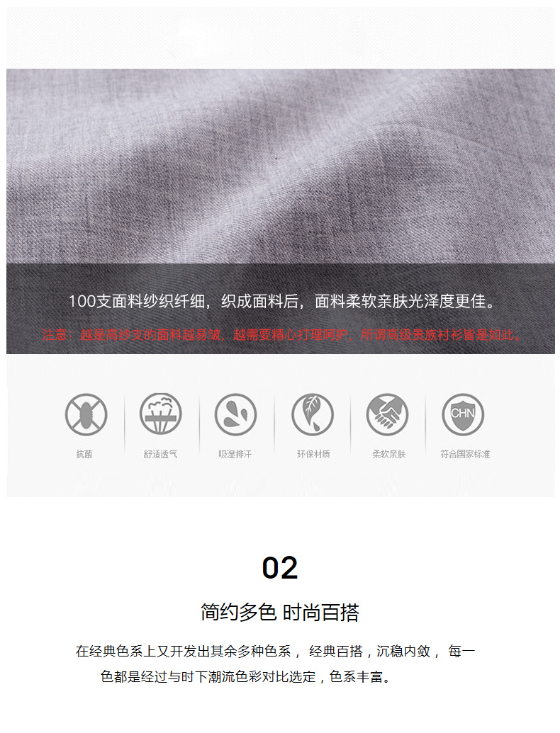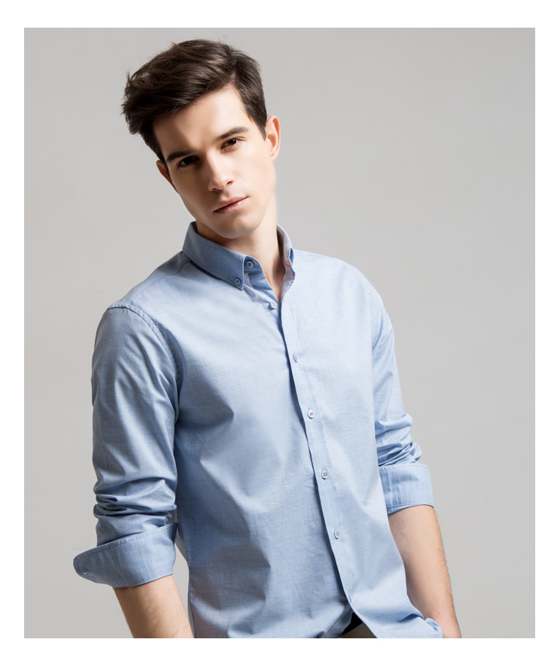 本米 男100%纯棉面料衬衫,100支高支高密面料,面料格外柔软细腻,纯棉材质吸湿透气。合体版型,上身不紧绷。定制色纺面料,纺纱阶段将不同颜色纤维混在一起,使每一根纱线都形成不规则的变化,织成面料之后,面料表面形成竹节一样的效果,色泽较更为温润,上身增添清新俊逸质感。