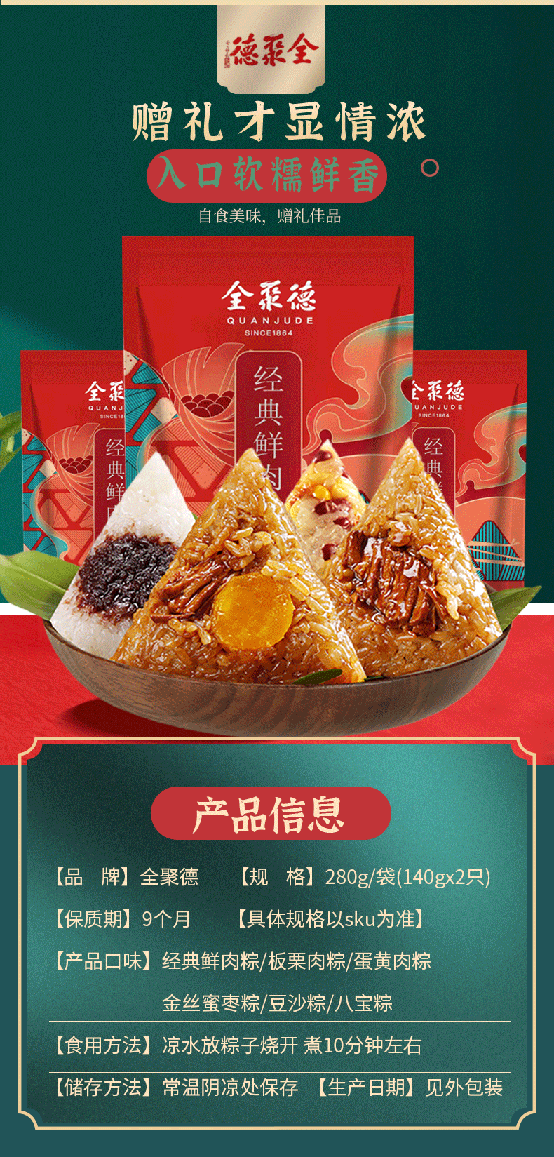 全聚德,鲜肉大粽子,正宗特产,精选糯米、猪梅花肉制作,粽香四溢~~另有多种口味可选,略有差价,可按需选购。领券链接点此