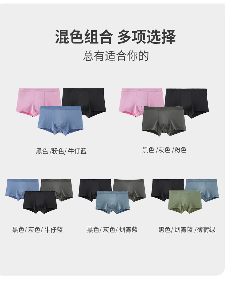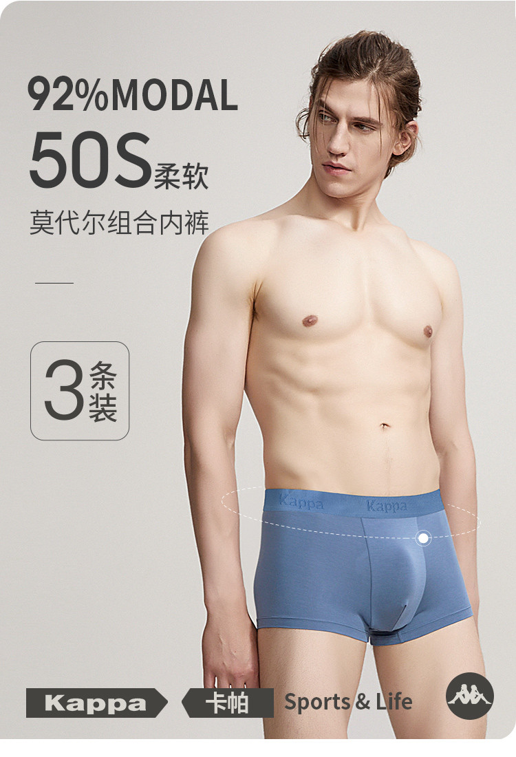 天猫kappa内衣旗舰店59元,可领10元优惠券,实付49元到手,Kappa 卡帕 男士冰丝50S超细莫代尔棉内裤,规格:3条,采用50s超细莫代尔抗菌面料,吸汗透气,低饱和度的莫兰迪色系,不张扬、不鲜亮,自带灰度的高级感,舒缓雅致,有柔和舒适的视觉感。
