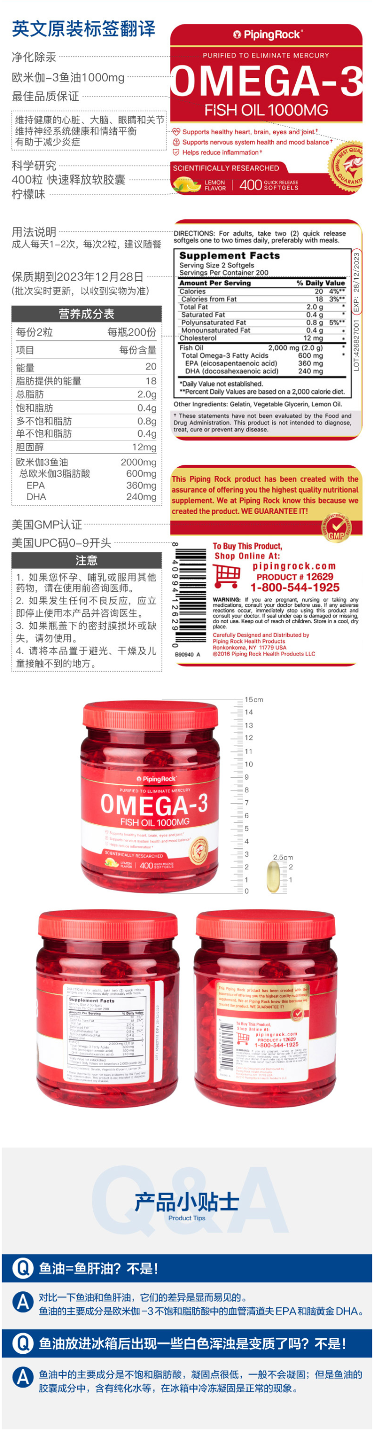 NBTY作为美国最大的膳食营养补剂公司之一,旗下创立了多个畅销品牌,如Nature's Bounty(自然之宝)、Vitamin world(维他命世界)、Puritan'sPride(普丽普莱)、美瑞克斯(MET-Rx)等。PipingRock同样也是NBTY旗下品牌,15年才进入中国,其95%的产品均在美国FDA的严格审核获有cGMP认证的工厂生产。