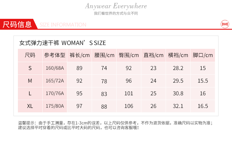 这款地球科学家 女弹力休闲透气速干裤,是2018年专柜款,使用靠谱的抗撕裂速干尼龙面料,耐磨抗撕裂不易破损。尼龙纱线呈多股中空状,中空管道快速吸水快速向四周分散,加大挥发面积达到快干,通常在雨天淋湿后不到1小时就能干。