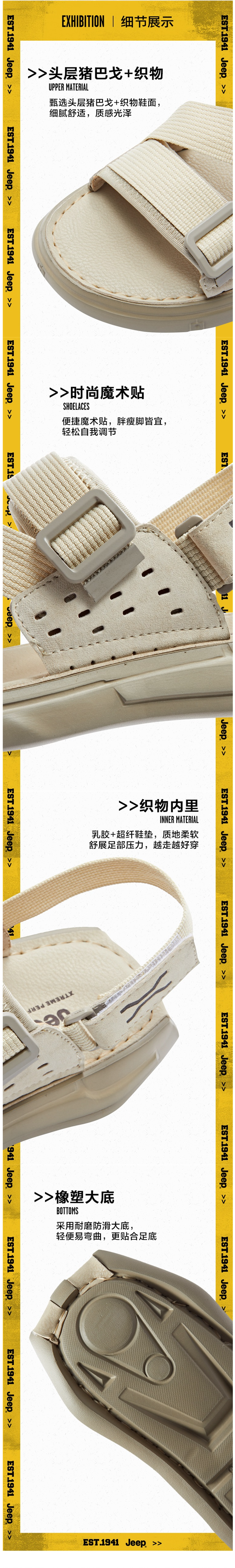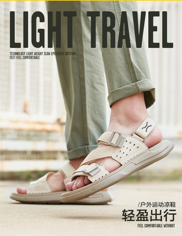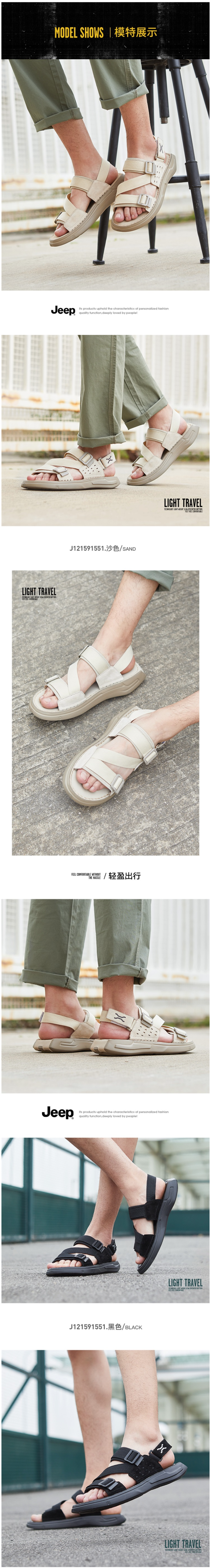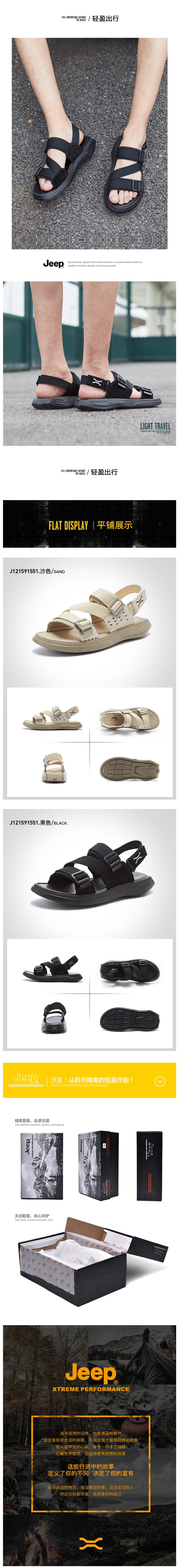 这款吉普Jeep 男轻便沙滩凉鞋,2022年的新款,鞋面用简洁的织物系带和头层牛制成,系带是速干尼龙材质的,非常耐磨,即使是在潮湿后也能迅速回干。