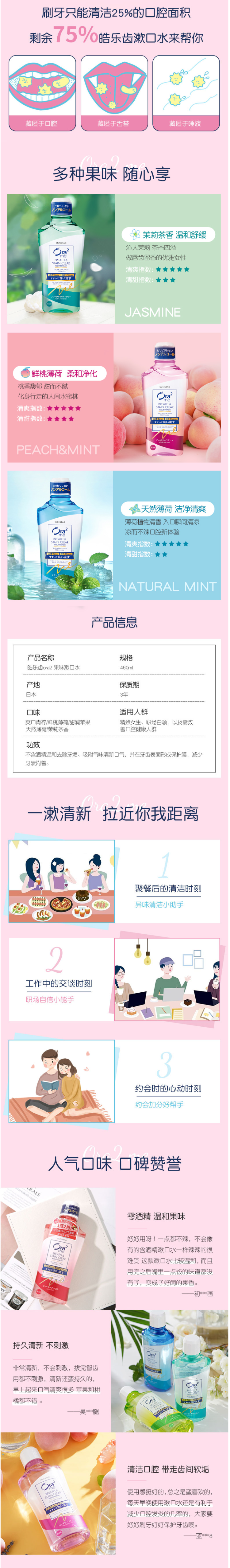 这款ora2皓乐齿 果汁口感漱口水,是像果汁一样口感的漱口水,0酒精成分,温和不刺激。实际规格460ml/瓶,共青柠460ml*2瓶、苹果460ml*1瓶。