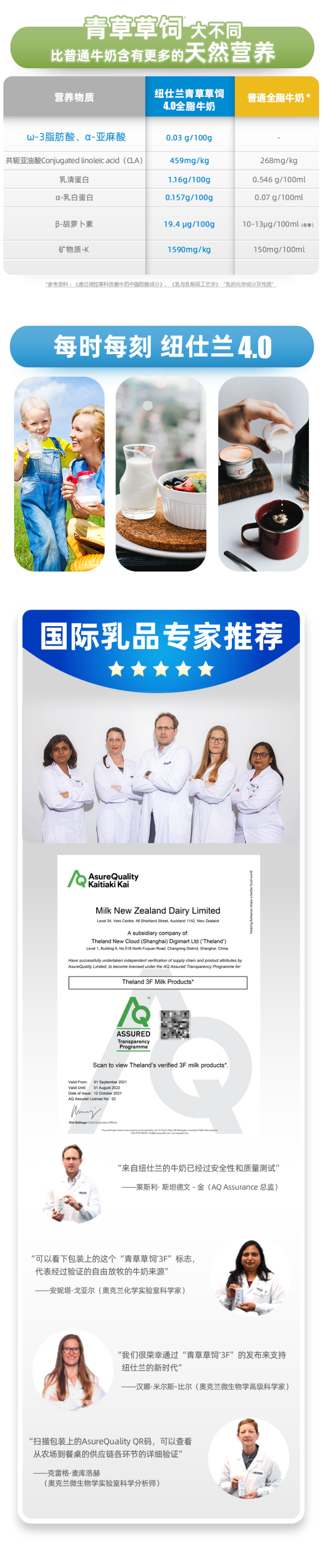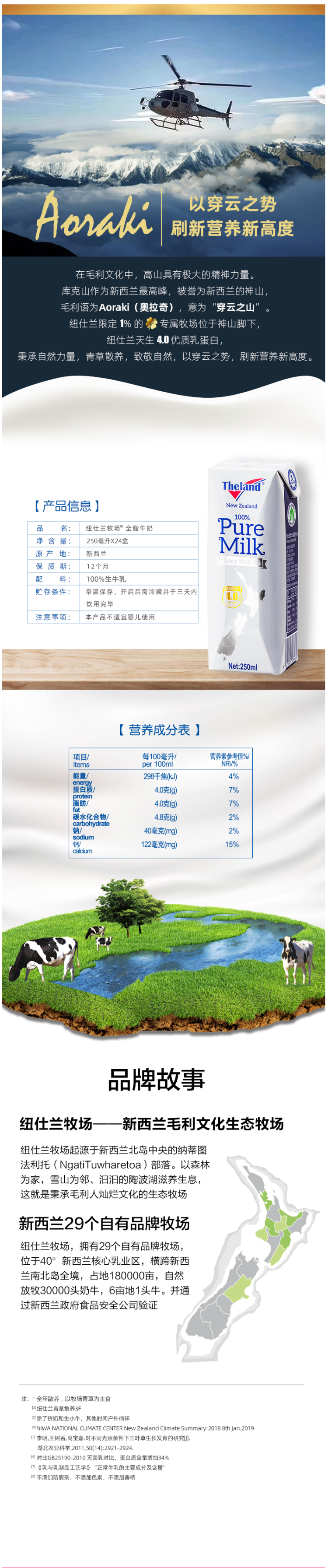 这款纽仕兰 4.0g乳蛋白全脂纯牛奶,新西兰原装进口,是纽仕兰的新系列产品,奶源是新西兰天然牧场直供,在当地生产罐装,是皇后镇希尔顿酒店的供应商,健康无污染的环境+草饲喂养,为奶牛们提供了优质的环境。