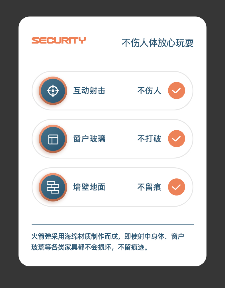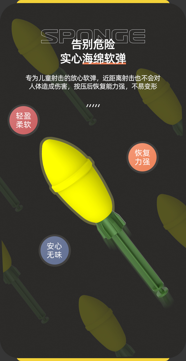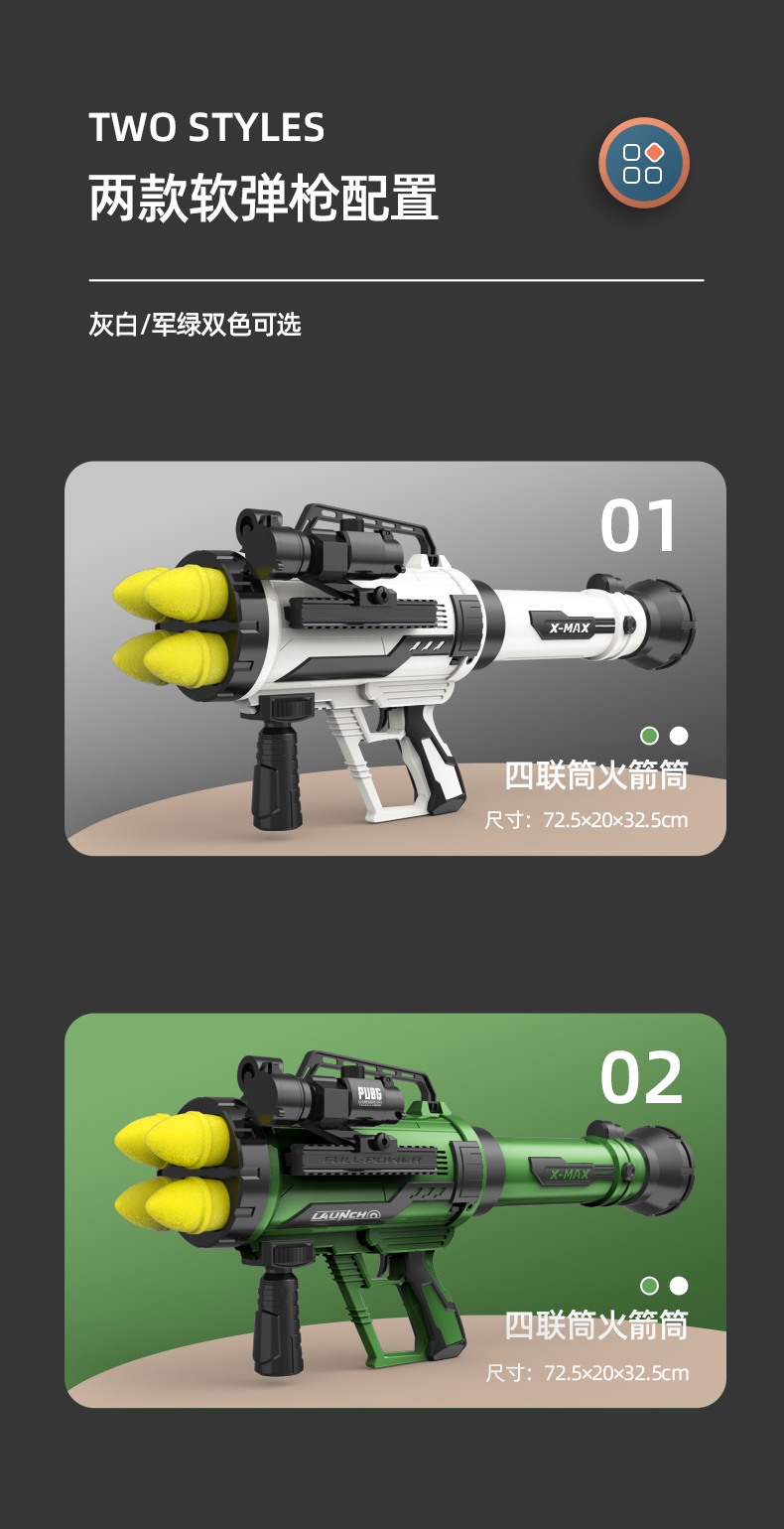 火箭炮欢乐对战,环保绵软弹0伤害,可调倍镜,红外发射器,射程6米左右,内置多种射击音效,增加游戏气氛。耐摔耐打,质量过硬,可拆卸,满足孩子的英雄梦!【赠运险】