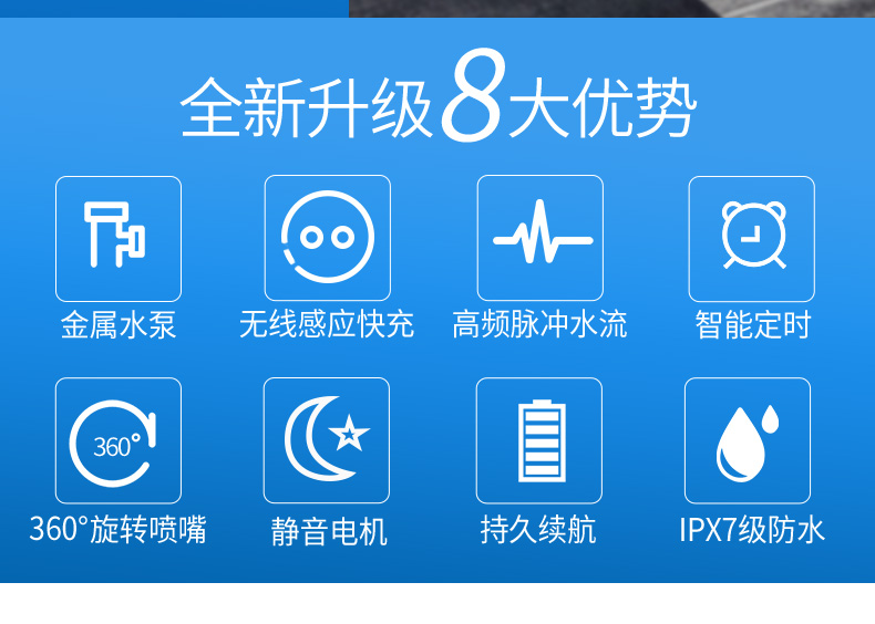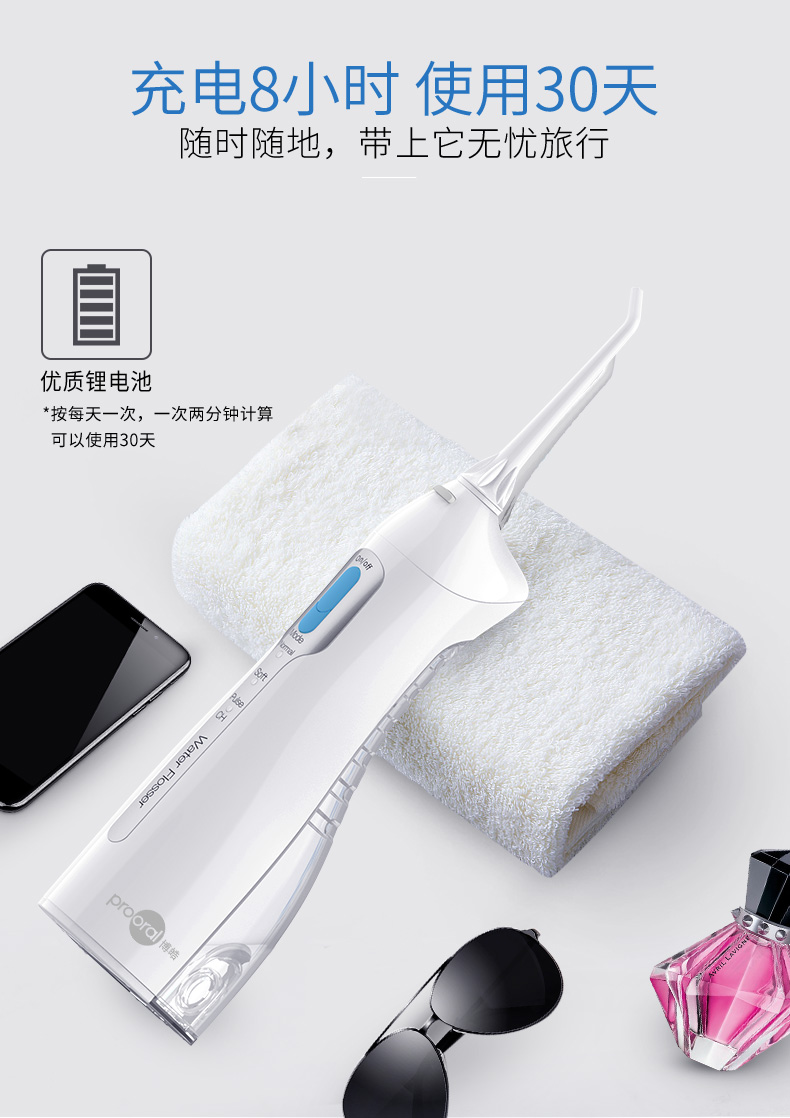 目前国内的水牙线的制造难度就在于压缩体积的情况下如何制造出超大水压,一般来说喷出5米的水牙线已经很给力,这次推荐的博皓电动冲牙器,喷射距离高达7米!不仅如此,甩开了水槽储水,这次推荐的是便携性的,每天中午、下午吃饭后就可以随时冲牙。