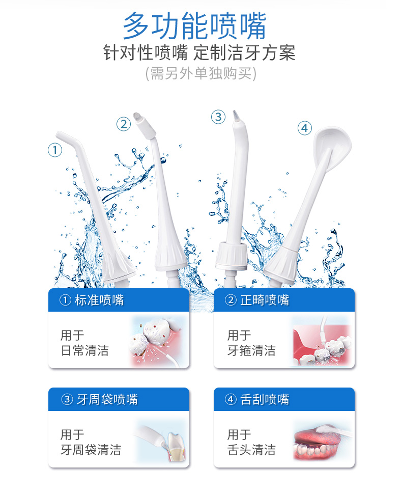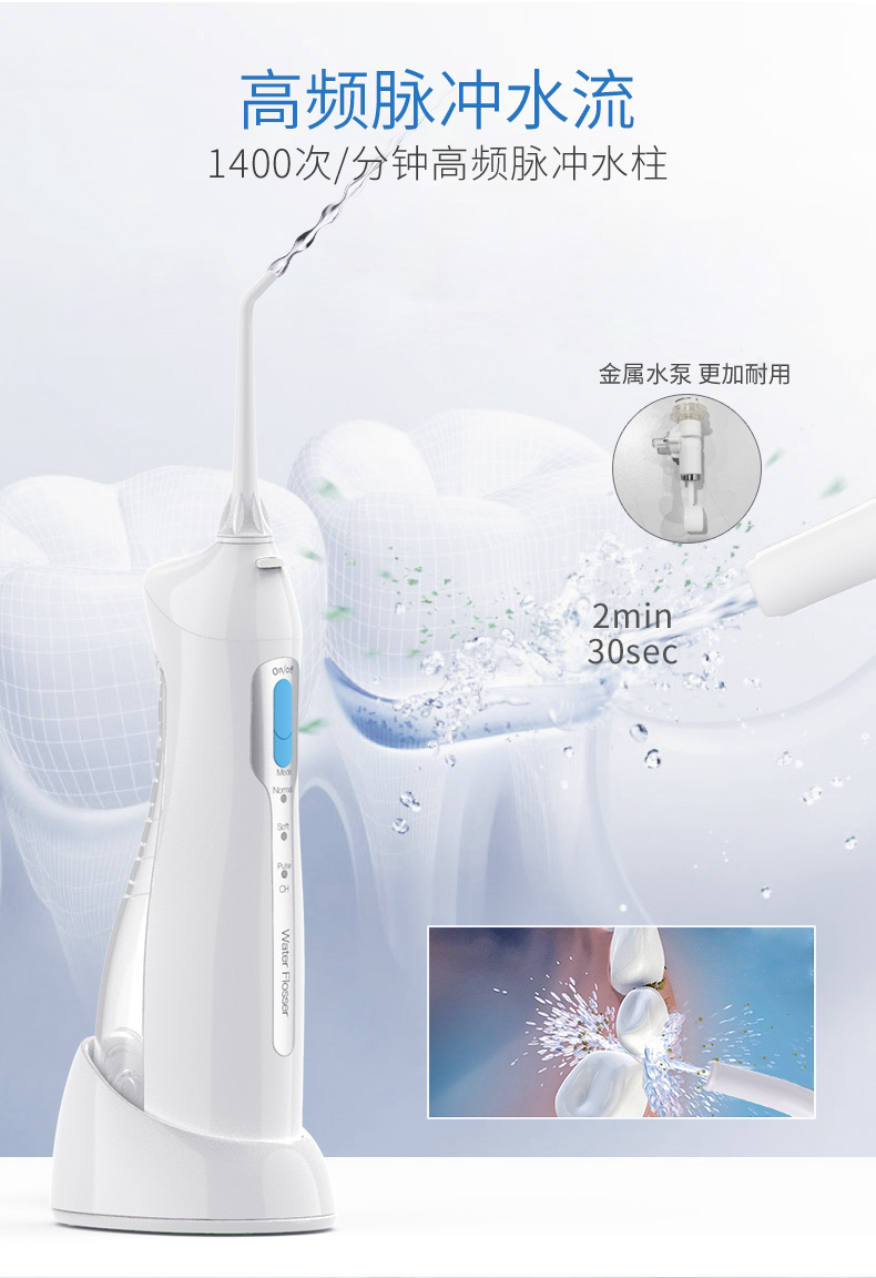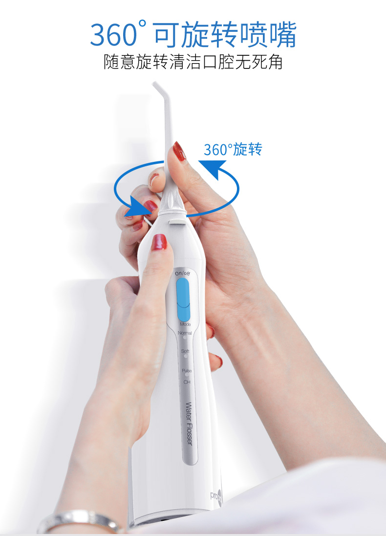 此价格不到国外洁碧水牙线的一半,但是效果相同。刚开始使用的时候,我们强烈建议大家使用轻柔档,部分刚使用此产品的买手使用强力档位可能导致牙龈出血。本品可以支持上下班带走,支持灌装漱口水,效果更佳。