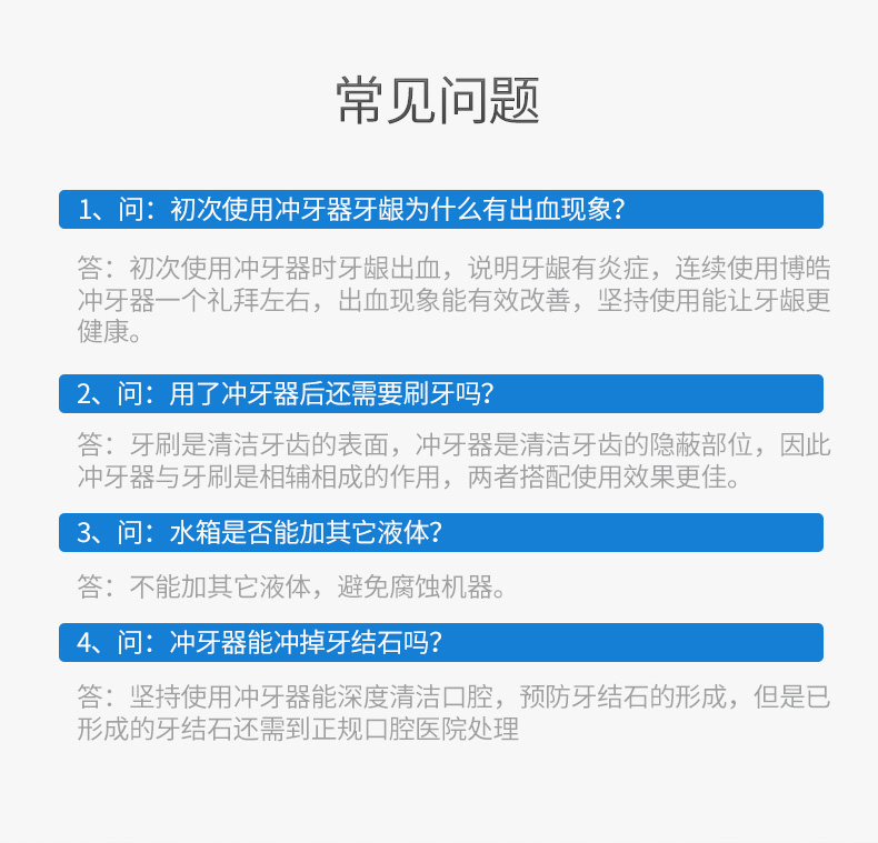 博皓是国内一个很有名的冲牙器厂商,之前一直致力于给欧美代工,近几年做了自己的品牌,因为多年的代工生产经验,基本200元档,这是性价比最高的。