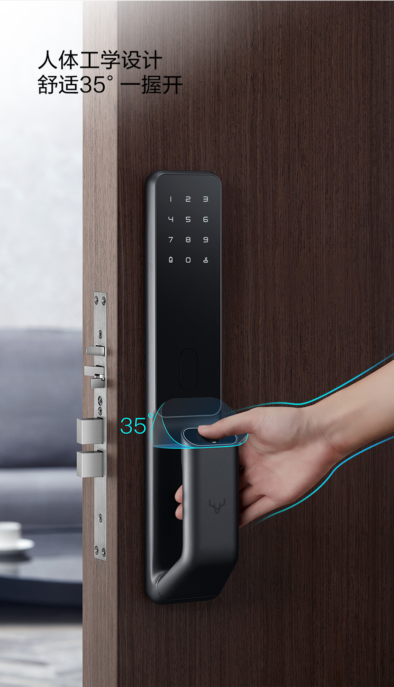 解锁成功后,锁舌自动收回,关门时0.5s内全部锁舌自动弹出,反应非常灵敏。握把根据人体工学设计,舒适35°倾角,使用更舒适。