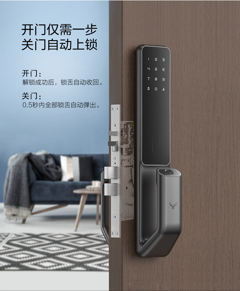 拥有5大解锁方式:指纹、密码、远程发临时密码、蓝牙、机械钥匙。