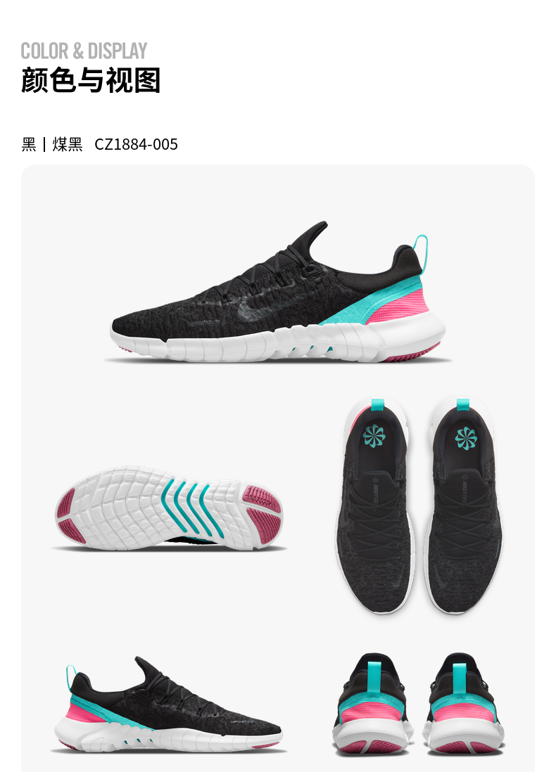FREE RN 5.0就是咱们日常说的赤足系列,大底的泡棉经过革新升级,具有柔软轻盈和出众的回弹性能,鞋底按照足部的受力点设计,不同的部位运用不同的厚度,采用激光切割的凹槽设计,柔韧灵活,前后脚掌有两块橡胶,提高耐磨性和跑鞋寿命。