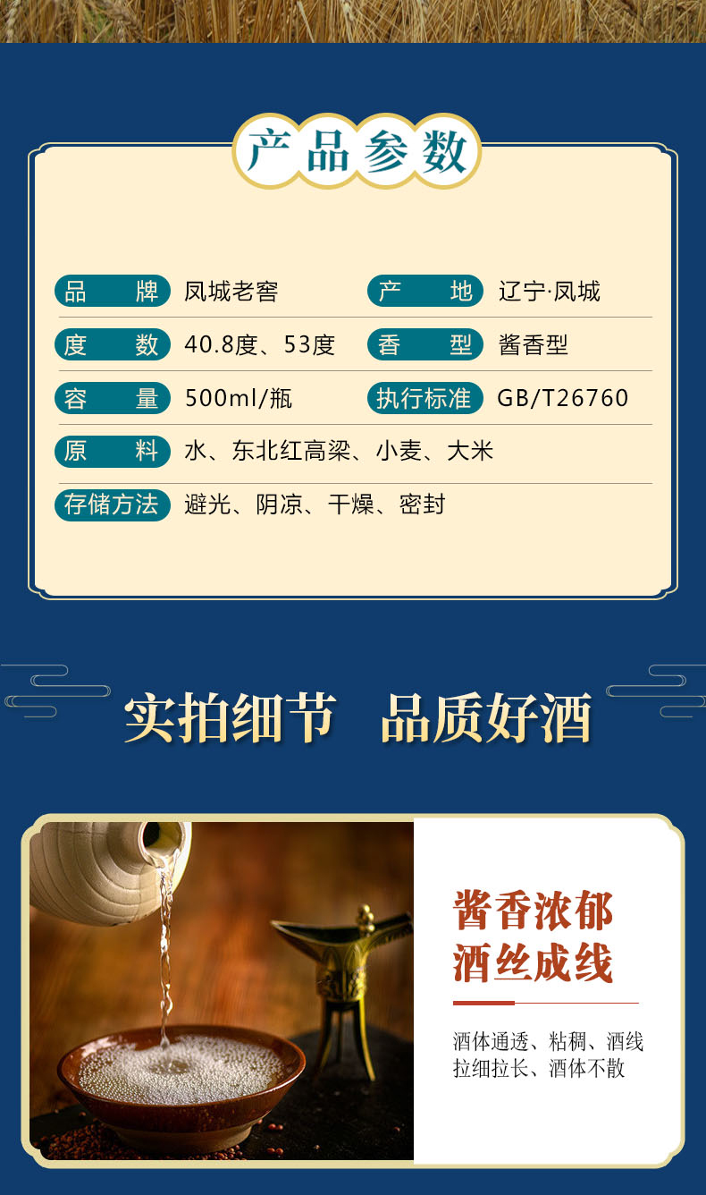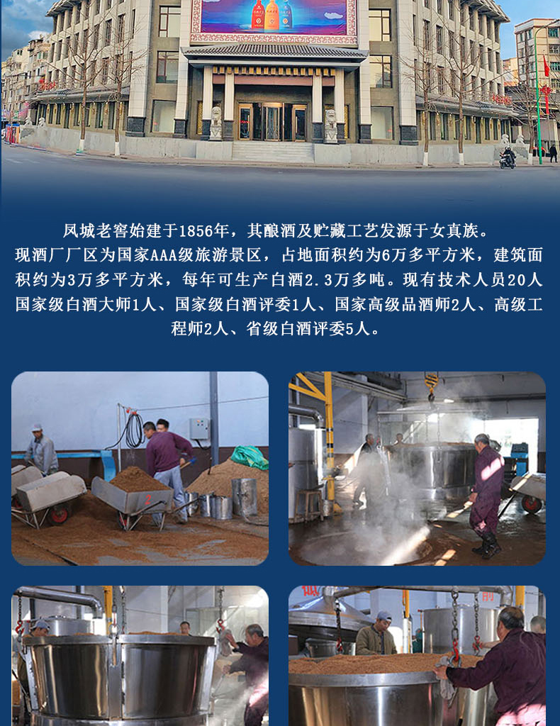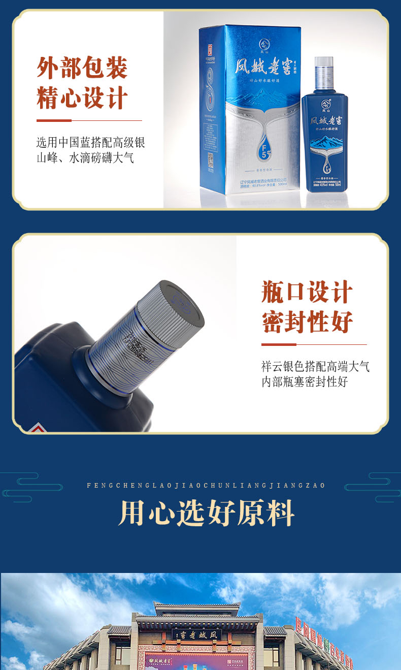凤城老窖是中华十大文化名酒之一,辽东第一名酒,以麸曲酱香,口感纯正著称。当年唐太宗李世民畅游凤凰山,途经“烧锅”时,闻得酒香,酿酒主人以佳酿相敬,唐太宗李世民饮后龙颜大悦,以后每年征“东烧锅”为特贡御酒,进献朝廷。