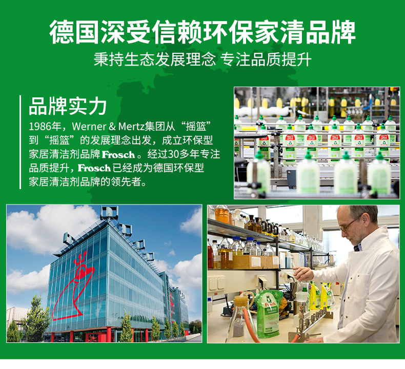 德国WERNER&MERTZ(凡尔纳&梅茨)集团,总部位于德国山清水秀的美因茨小镇,始于1867年,旗下拥有包括 ERDAL、REX、TUBA、EMSAL、TOFIX、RORAX、FROSCH等著名家居清洁剂品牌,几乎囊括了家居清洁养护所需要的全系列产品。