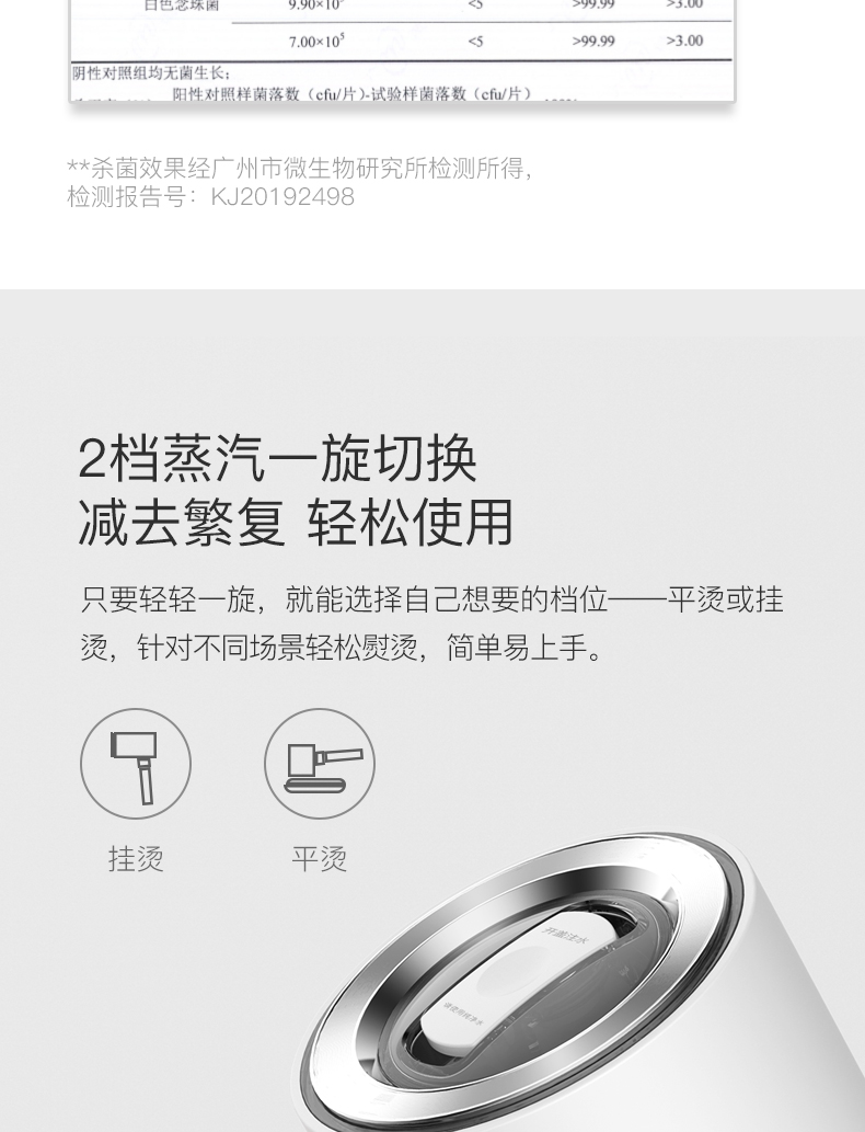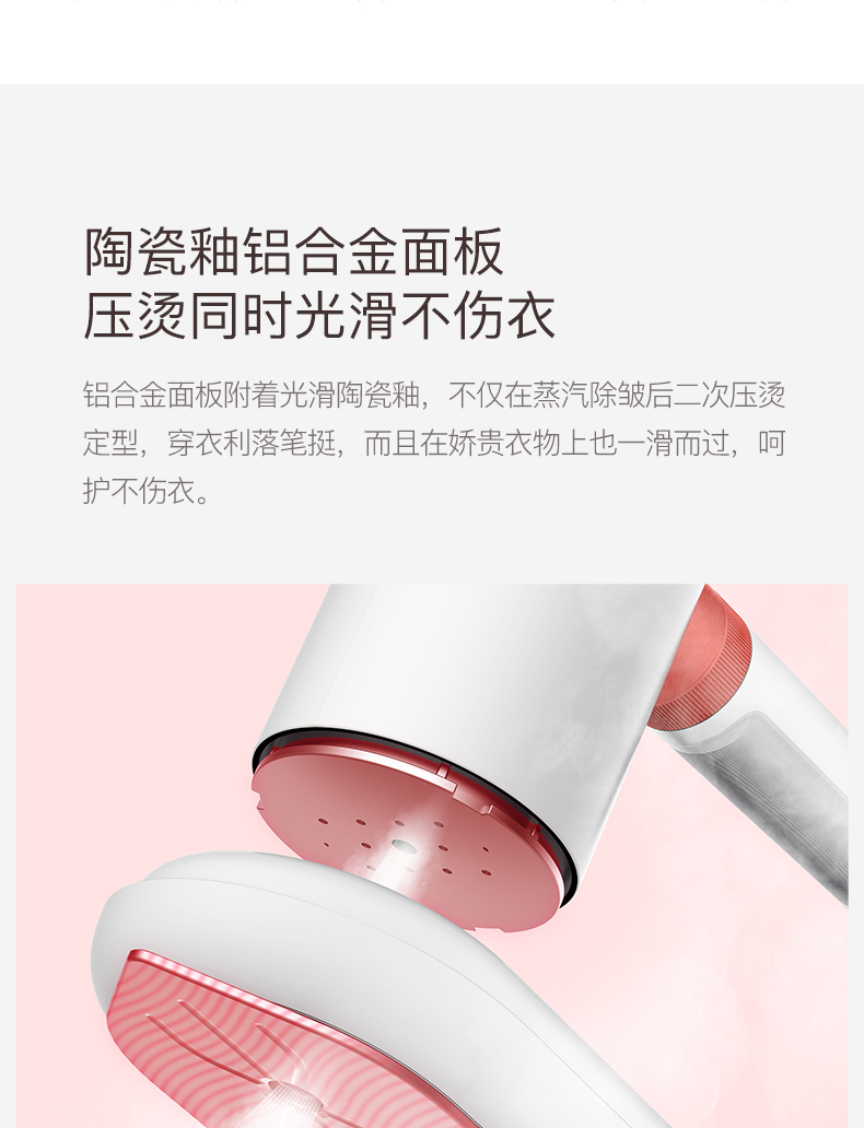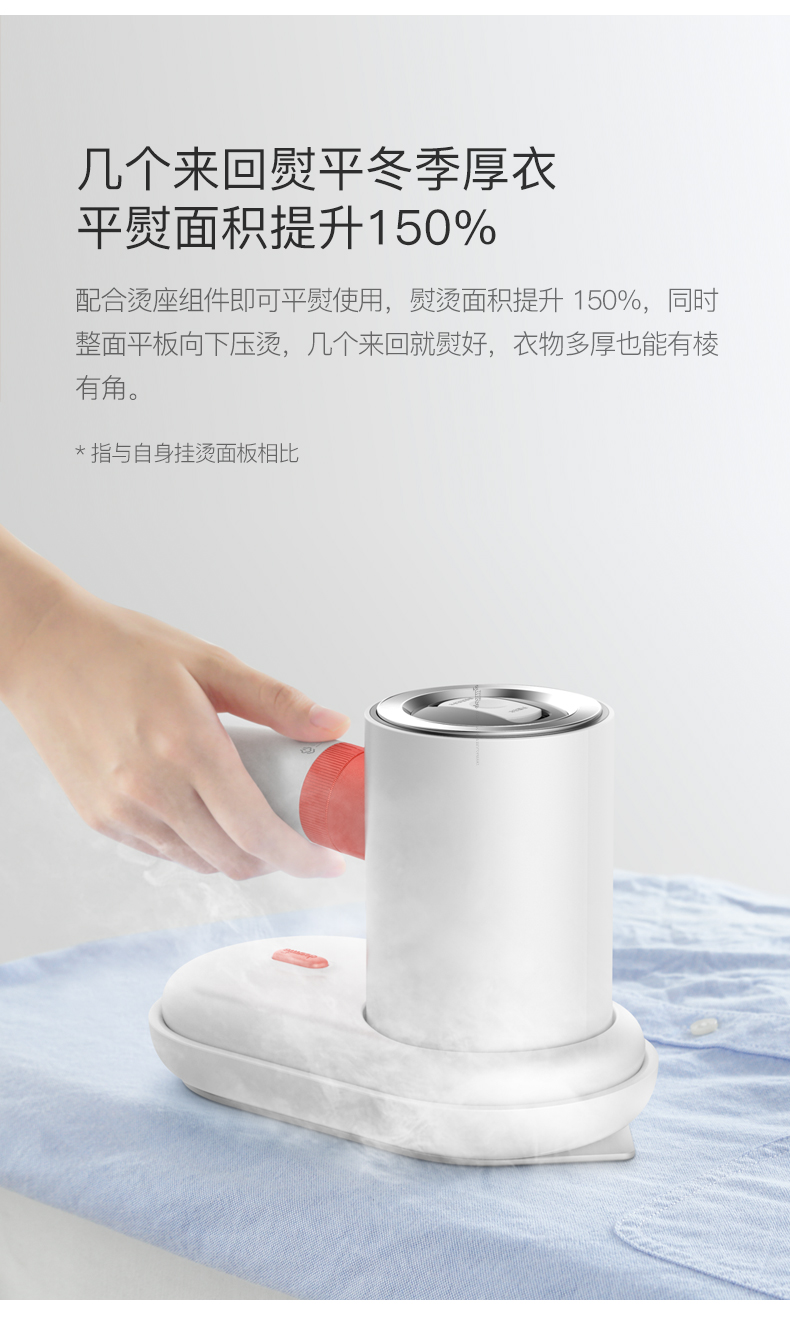 蒸汽2档自由切换,满足平熨、挂烫不同场景使用。组装上光滑陶瓷釉铝合金面板,可在蒸汽除皱后平熨二次定型,让衣物更加利落笔挺,穿着更舒适。日常除了熨烫还可为四季衣物、被褥、儿童玩具消毒等。高温蒸汽,达到99.99%物理杀菌,无需担心化学残留。