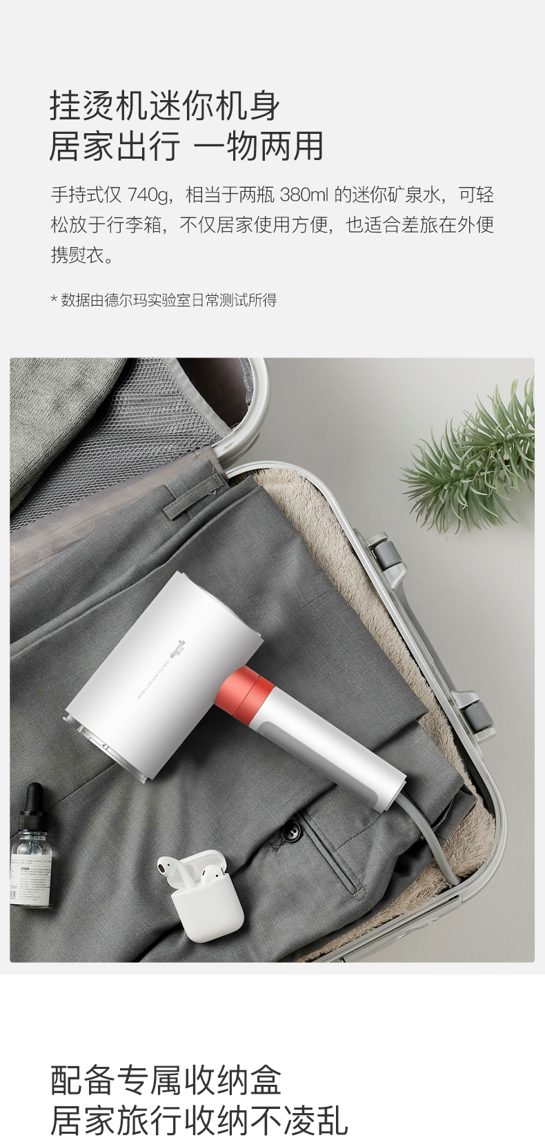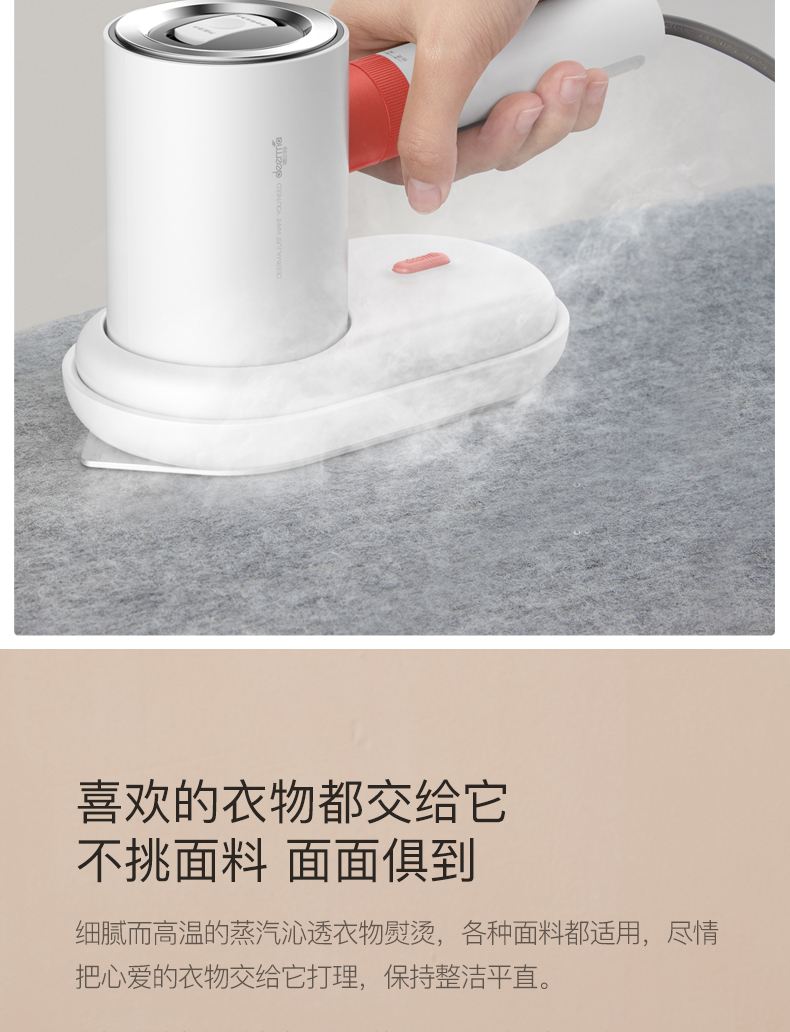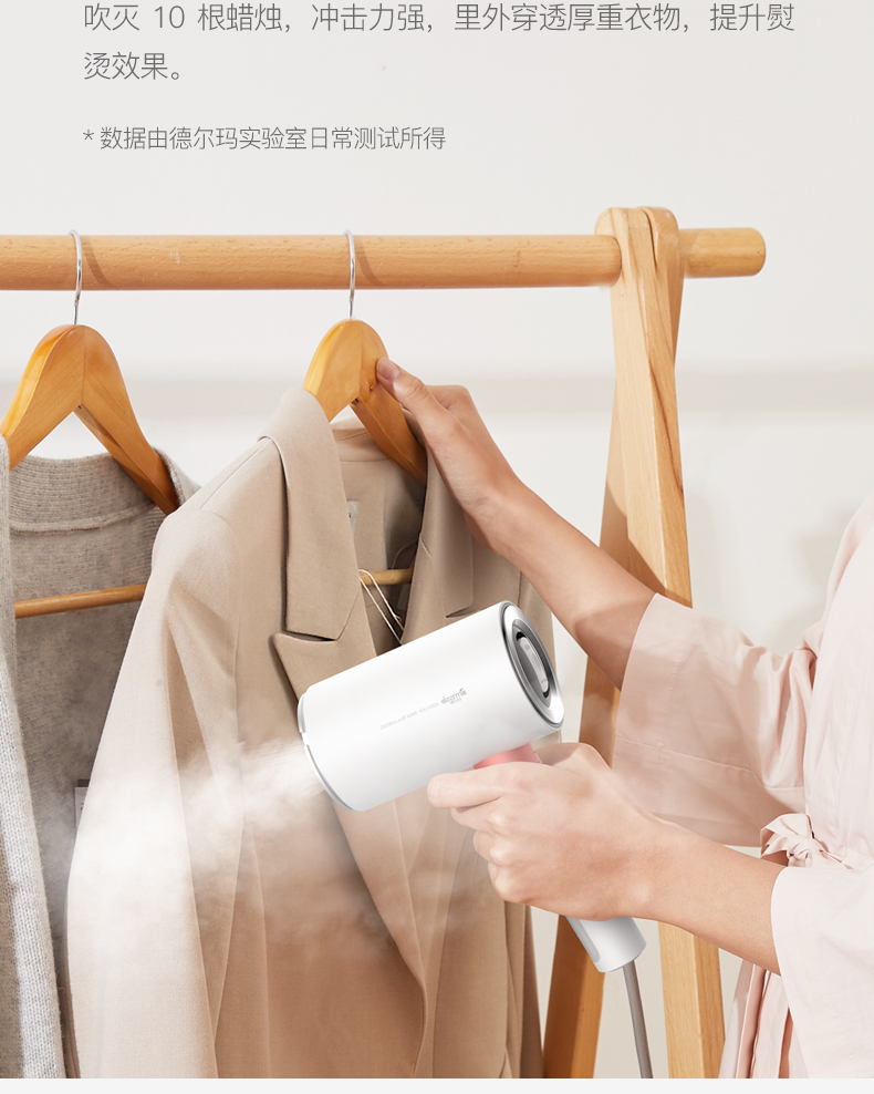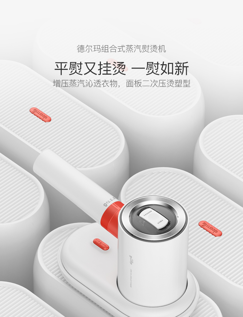 “德尔玛”是小米生态链旗下品牌。这款手持挂烫机,荣获了2020德国IF设计大奖,巧妙二合一组合结构,相当于挂烫机和熨烫机二台机器,即能平熨压烫出笔挺衣型,又具备手持挂烫机的轻巧便携,一按一拧轻松拆解,兼具轻便与功能性。配备专属收纳盒,嵌合式收纳,固定防碰伤,居家、旅行收纳不凌乱。