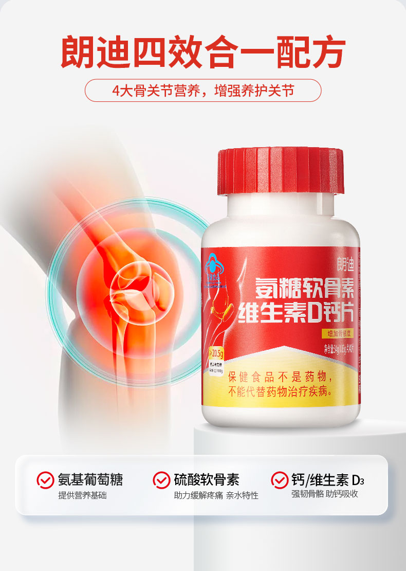 天猫朗迪保健品旗舰店65.8元,可领50元优惠券,实付15.8元到;氨糖软骨素钙片维生素D,补充氨糖营养,养护关节健康,修复破损软骨,使关节软骨自身修复能力提高,专为国人设计!青少年、成人、老年人适用,让您越来越有活力.