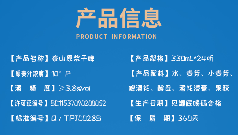 这款泰山原浆啤酒,产地是山东泰安,选用水、麦芽、小麦芽、酵母、啤酒花为原料,运用德国上面发酵工艺酿成,没有经过过滤,不兑水、不稀释,含有酵母,保证是原浆原液。
