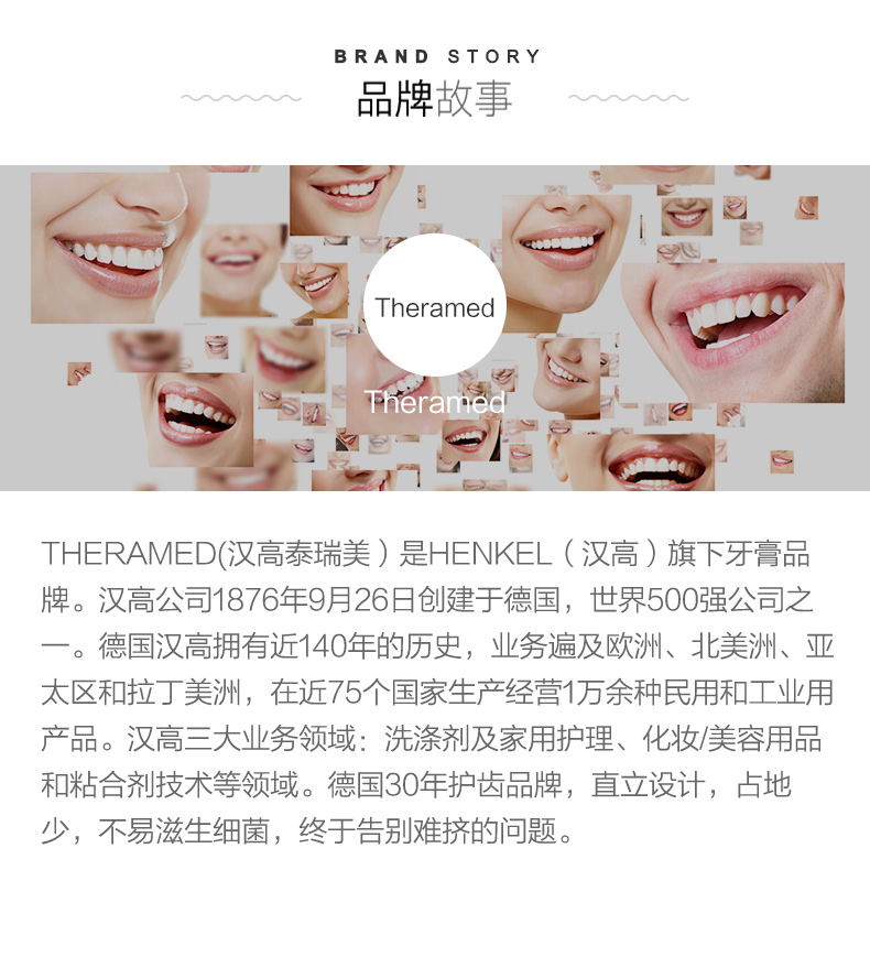 这款汉高的牙膏,小编已经入手用了很长时间了,德国原装进口,是由德国Schwarzkopf&Henkel(施华寇&汉高)公司出品的成人牙膏,经过欧盟最严格的检验标准,全面修复7大空腔问题,颠覆式传统,采用全新立式按压的方式,双重防护,隔绝空气,保护您的牙膏不受浴室潮湿环境的污染,更干净更卫生。