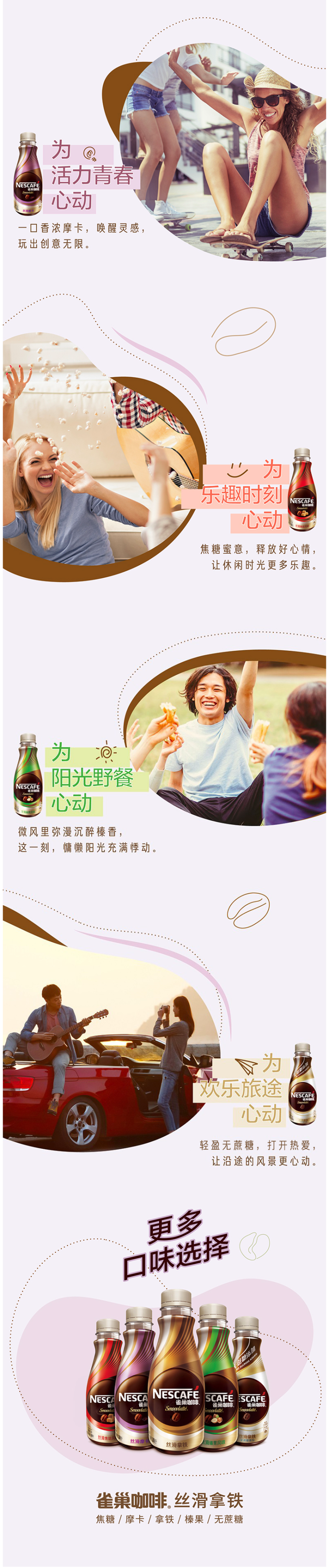 雀巢咖啡"是世界上第一个速溶咖啡品牌,保有独特的咖啡香醇,拥有悠久的历史与传承。过去的78年间,雀巢咖啡已经从一罐咖啡发展成为如今全面的产品种类和系统。雀巢咖啡在全球180多个国家都有销售,它引领着咖啡饮料品类的潮流。