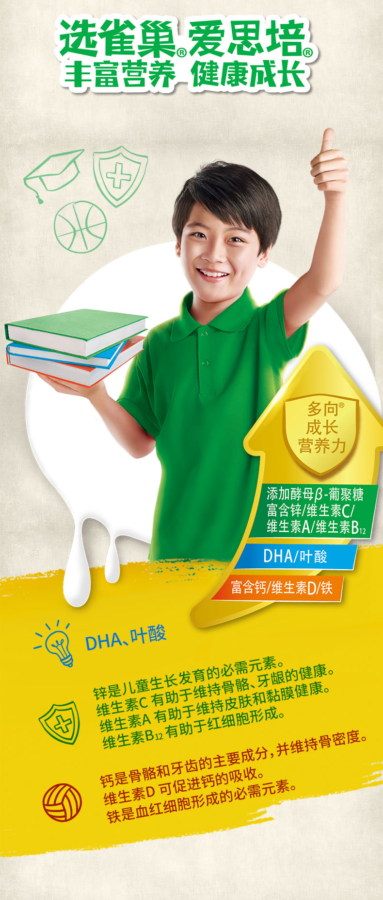 天猫雀巢官方旗舰店106.4元,下单立减26.6元,可领10元优惠券,实付69.8元到手。这款Nestlé 雀巢 爱思培 儿童营养奶粉,全进口奶源,富含钙铁锌、维生素维生素D以及DHA叶酸三重营养,助力儿童黄金6年发育期成长,早晚各一杯,学习有劲,睡眠更好。