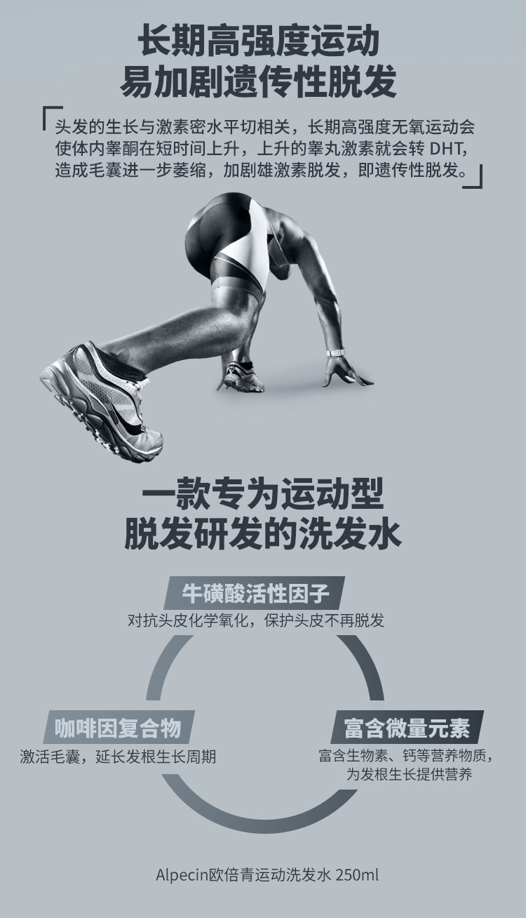 2020年环法大师赛五星体育战略合作伙伴,运动型咖啡因洗发水,为头发根提供能量,科学防脱,无硅油配方更放心。适用运动导致的脱发问题,采用了特殊的牛磺酸以及微量元素、锌、镁、钙活性成分组合,强根健发,为发根补充能量。