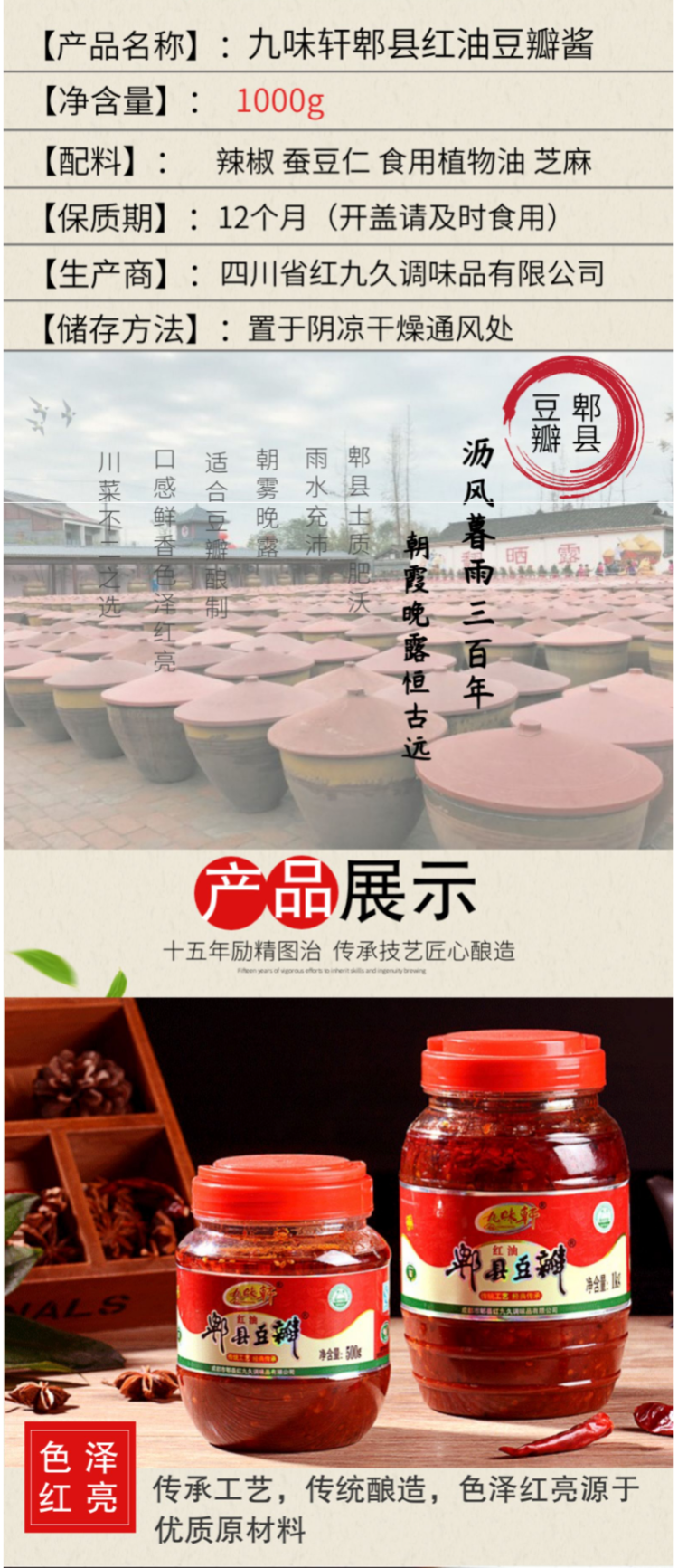 这款九味轩 郫县豆瓣酱,正宗四川风味,使用辣椒、蚕豆仁等制成,色泽油润,味香醇厚,用它炒菜、打火锅、蘸酱,超百搭。