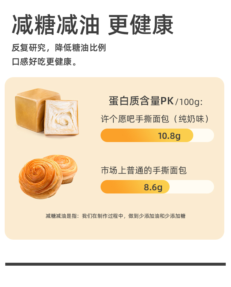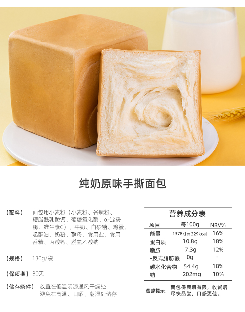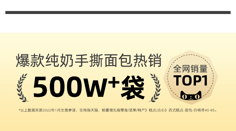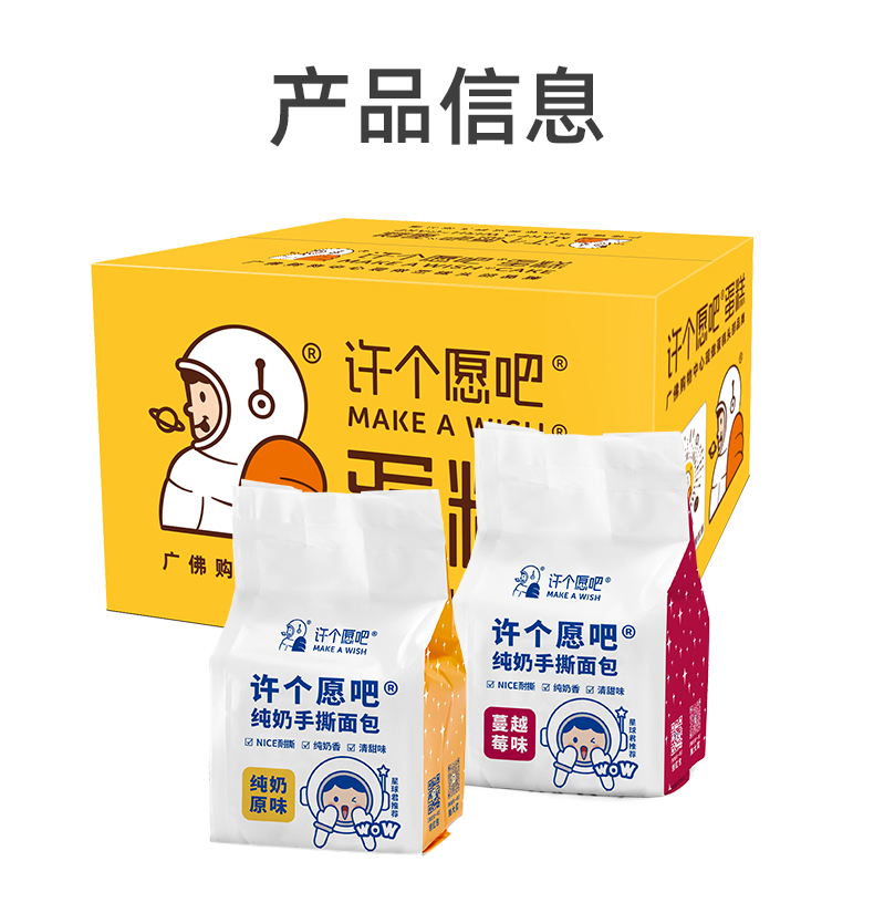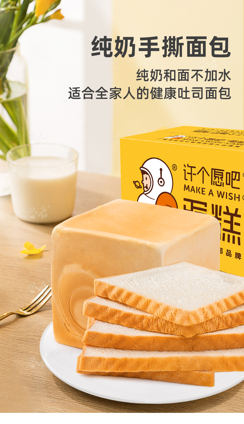 这款许个愿吧 纯奶酪手撕面包,纯奶,完全不加水,高密度组织,非常耐撕,相比于普通的吐司面包,更重,更厚实,外有嚼劲,内里软软,奶香四溢。