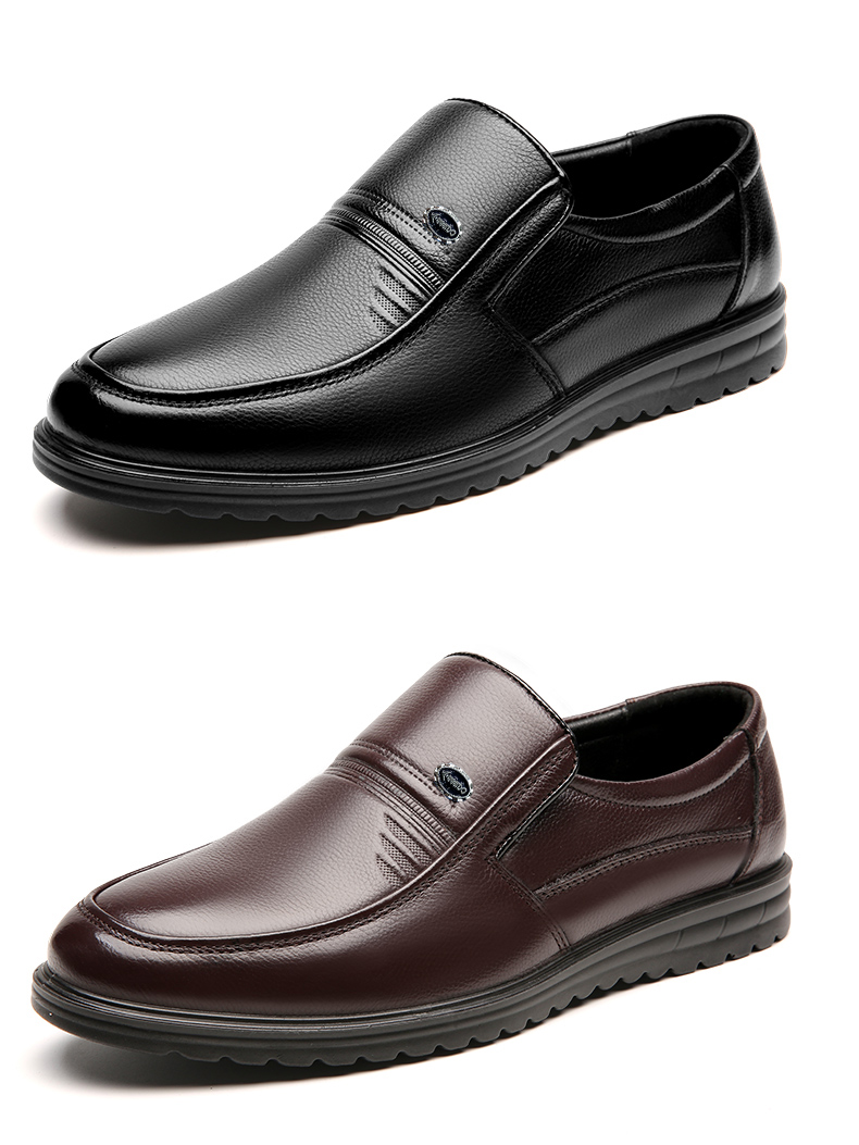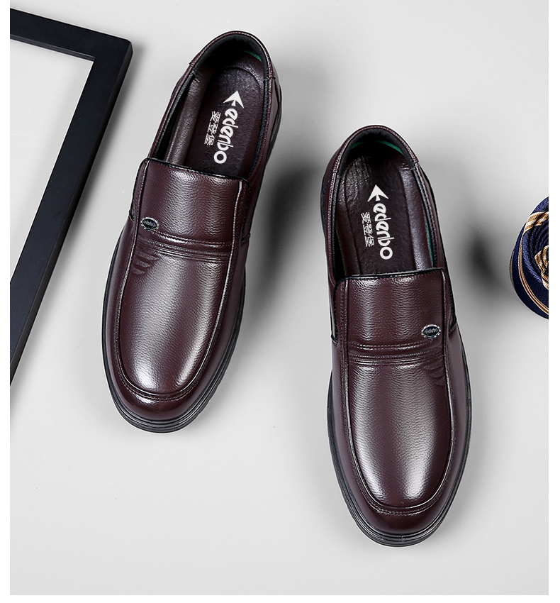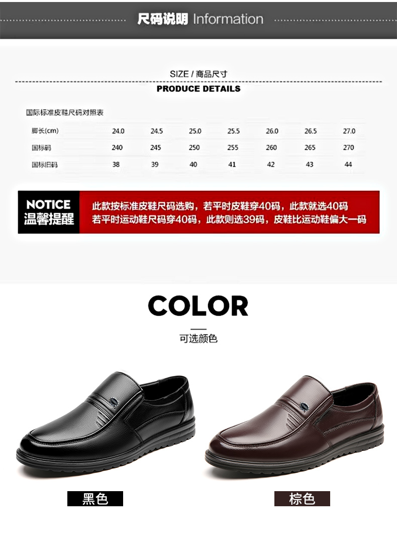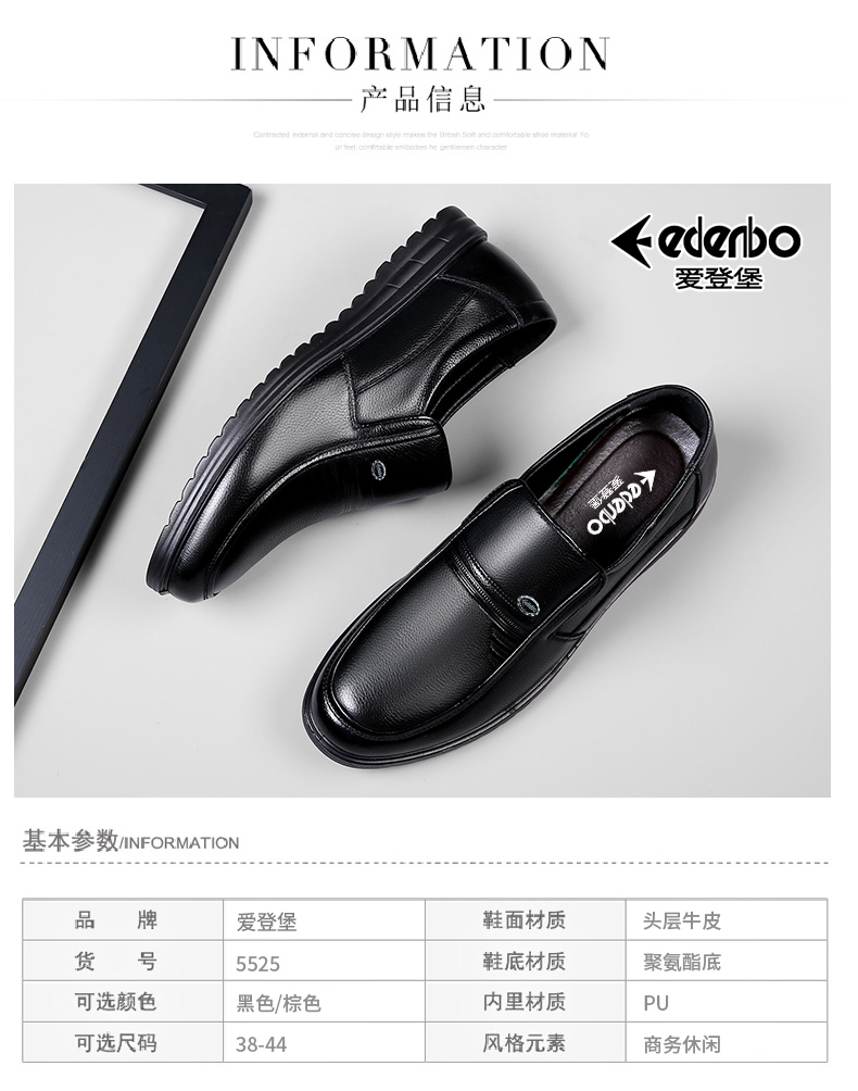 这款皮鞋,鞋面采用头层牛皮材质,质感细腻,皮面光泽出众,天然纹理,柔软有韧性,鞋底柔软聚氨酯,结实耐磨柔软有韧性,搭配防滑底纹,抓地力强,行走安全,脚感舒适,久穿不累,日常休闲走路、开车都能穿。