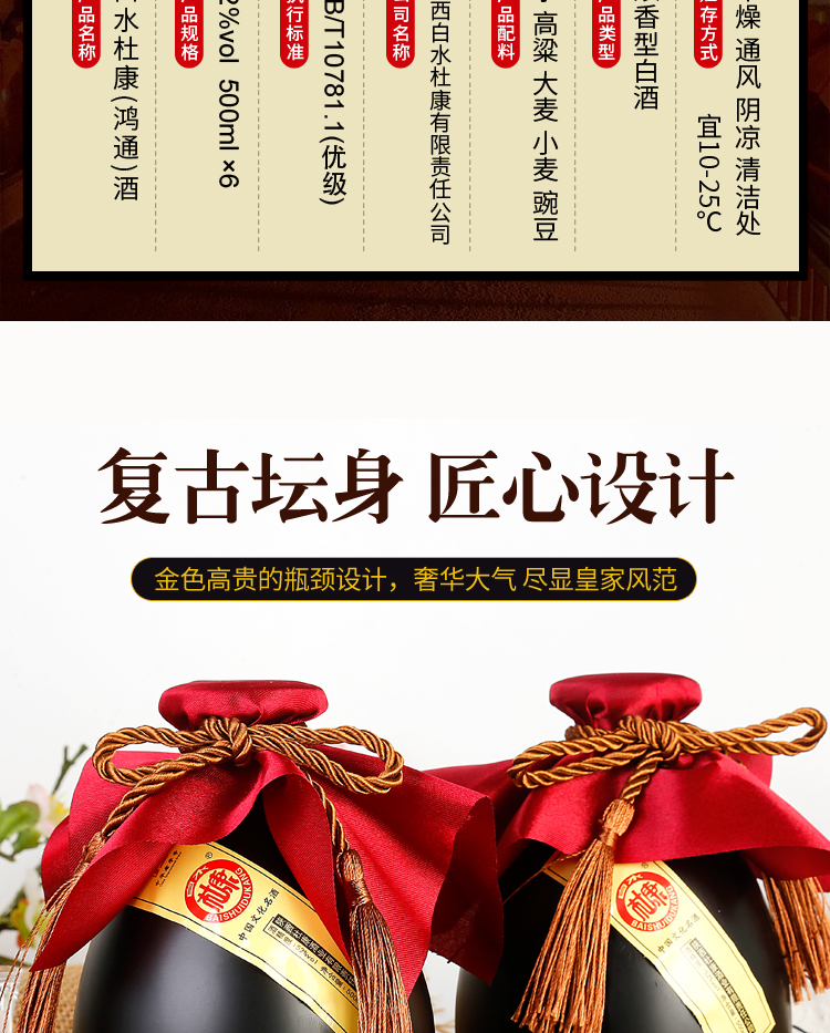 天猫云小海酒类专营店699元,可领600元优惠券,实付99元到手;中华老字号,白水杜康,52度浓香型白酒,甄选用优质高粱、大麦、小麦、豌豆多种粮食为原料,遵循古法固态发酵,酒质柔和,酒花饱满,入口爽净,好喝不上头。规格: 500ml*6瓶