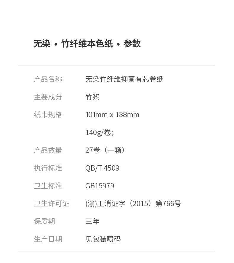 这款是 有芯卷纸,无漂白,无添加,无荧光,无化学成分添加,全竹原浆,食品级认证,可直接接触食品,抑菌率高达98%以上,具有多孔纤维,可以瞬间吸收和蒸发水分,湿水后韧性更强,擦拭后不易松散,干湿两用。