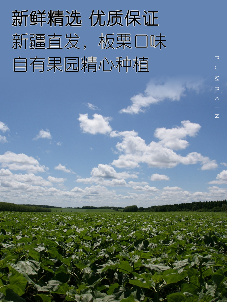 今天推荐他家的板栗味南瓜,产地是新疆天山周围的昌吉,由于地理因素,该地区白天气温高、夜晚气温低,光照时间长达16小时,使得新疆南瓜的光合作用强烈,积累了丰富的营养成分结和甜分。同时由于降水稀少,主要以天然无污染的地下水进行灌溉,少虫害、农药的使用率低。