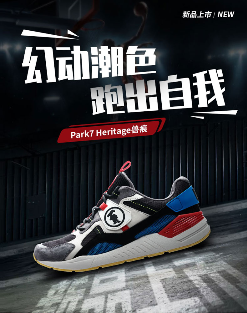 与原版Park7 Heritage相比,“兽痕” 鞋面是用牛反毛皮搭载3D透气网布制成,包裹舒适、透气性强,在保持舒适包裹感的同时,做出了更富有层次的结构设计,复古气息更浓,搭配潮流撞色设计,更适合年轻人的审美。