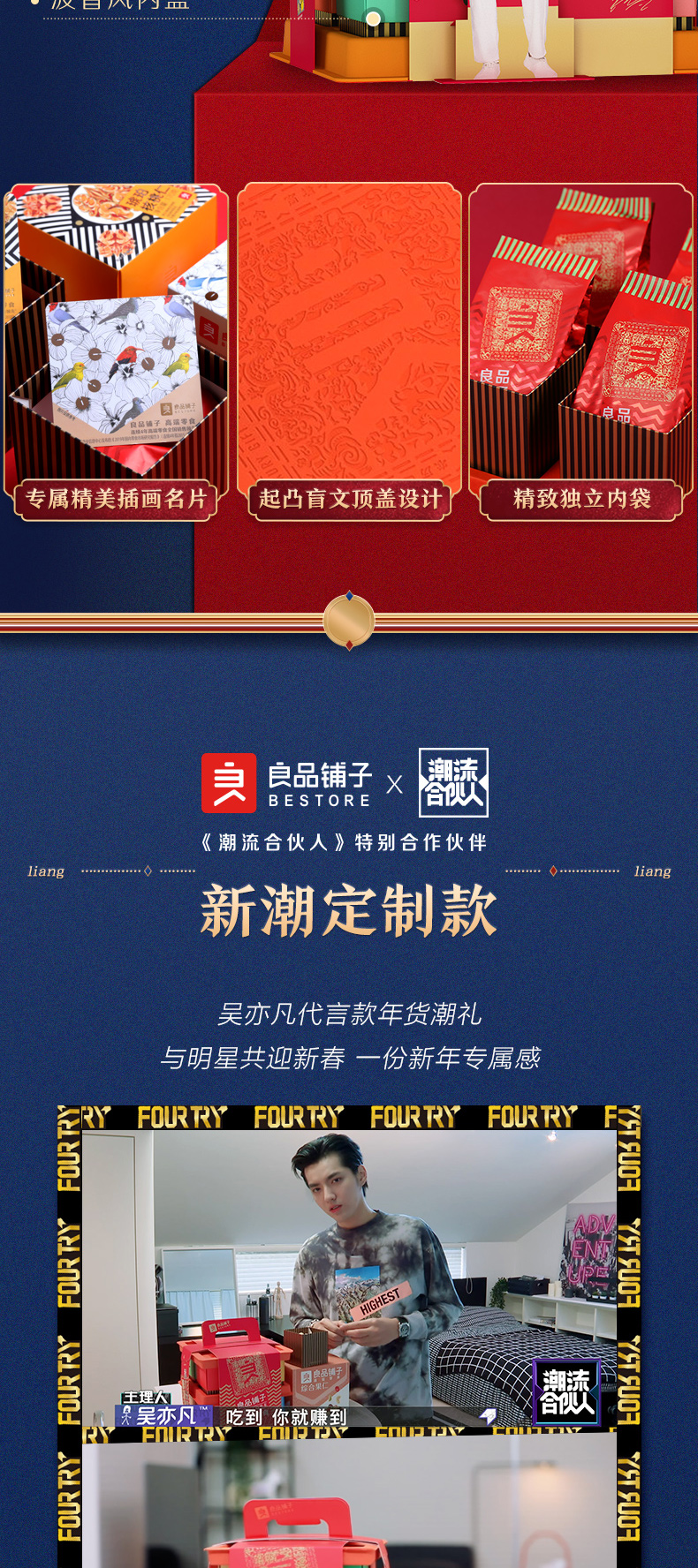 吴亦凡推荐,良品甄选定制礼盒,新中式·国潮风·御膳提盒风格,良印烫金工艺,波普内盒,起凸盲文顶盖设计,带有精美插画名片,轻奢匠心之作,高端大气上档次,非常适合过年送礼。