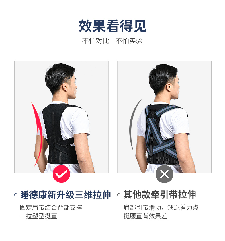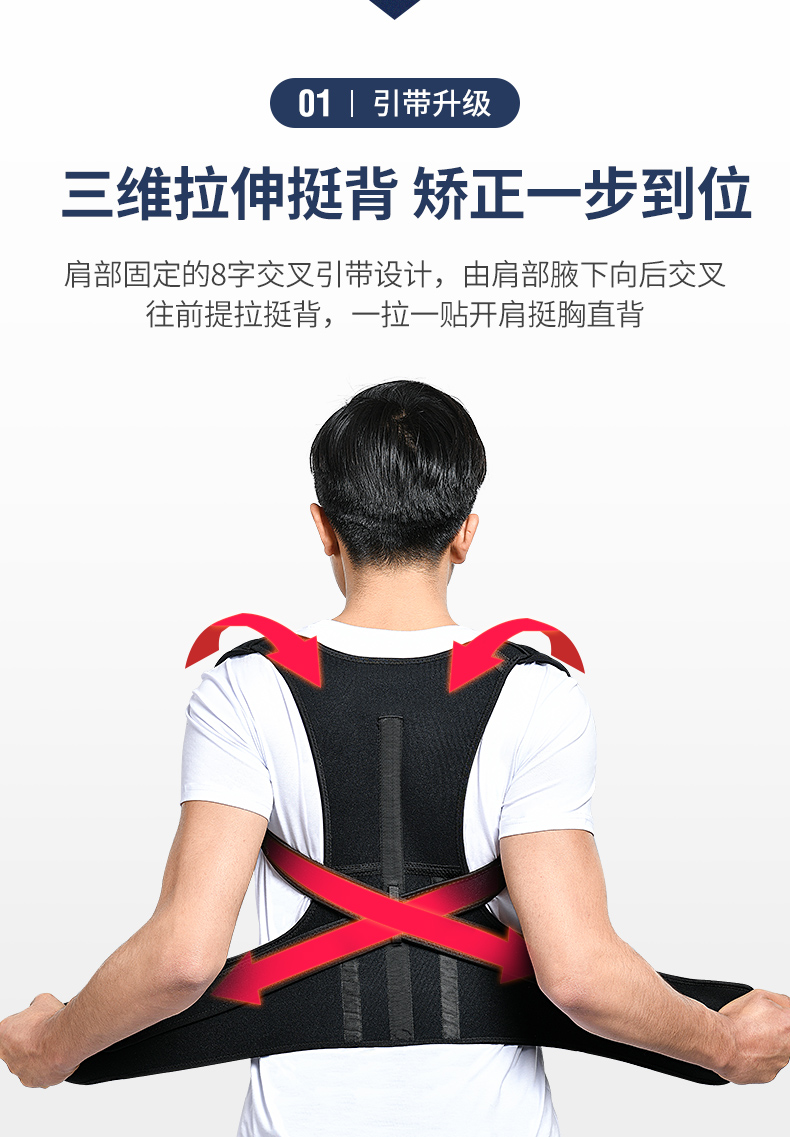 中日合作研发,全新隐形驼背矫正器,升级三维拉伸,固定肩带+背部支撑,形成三角施力面,给背部更强的支撑力,每天2小时,快速矫正驼,挺直腰身,回到好身姿。