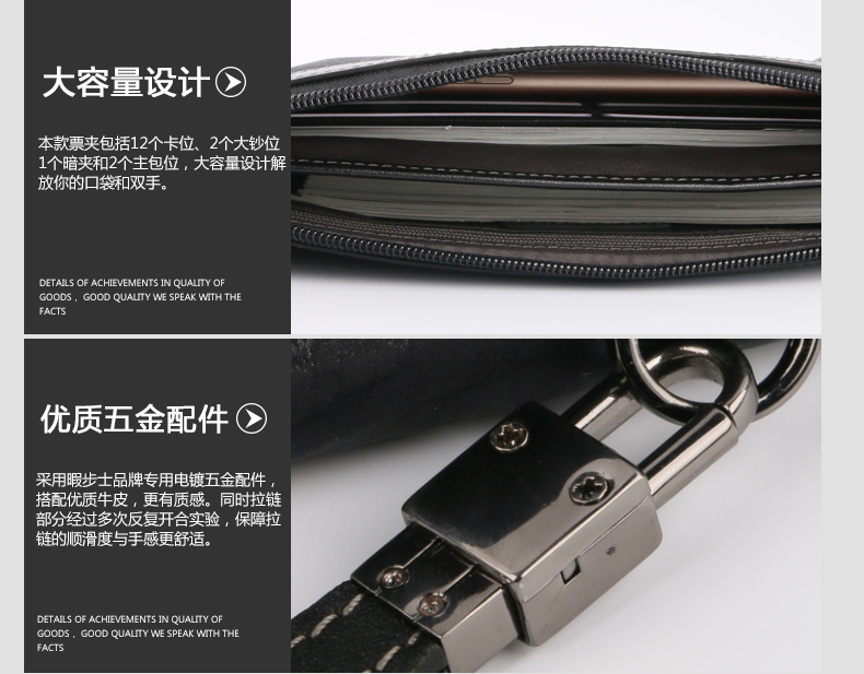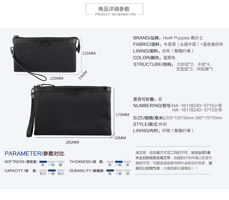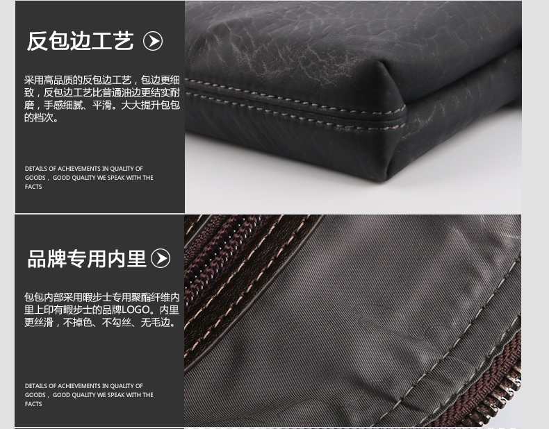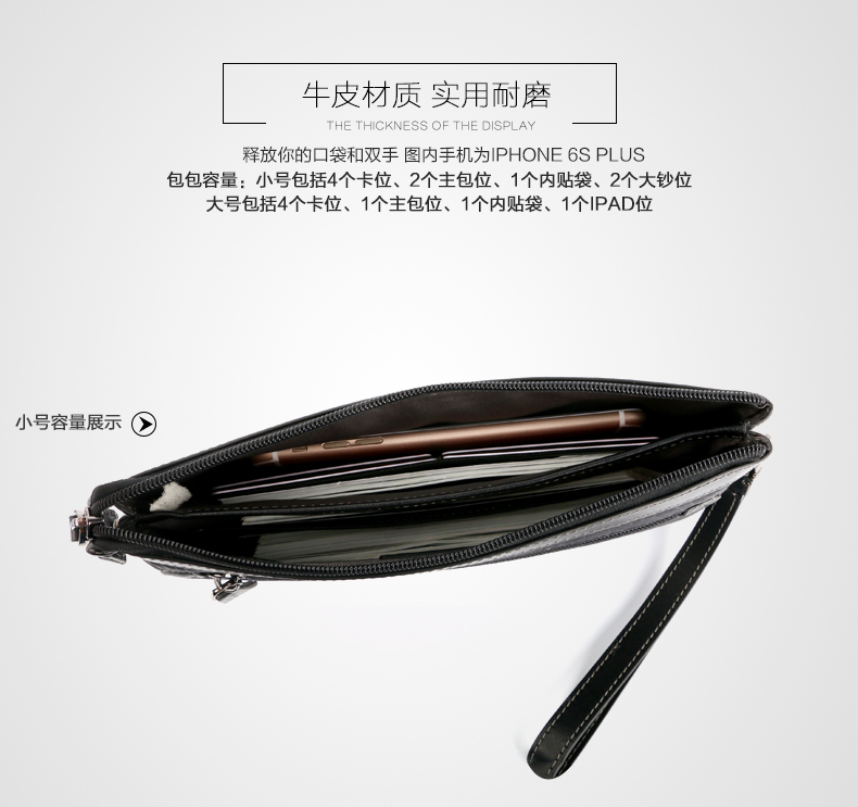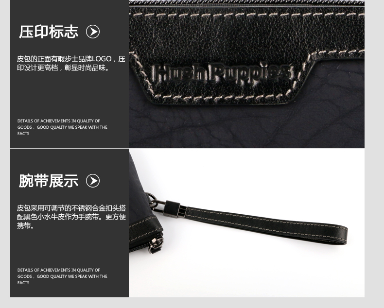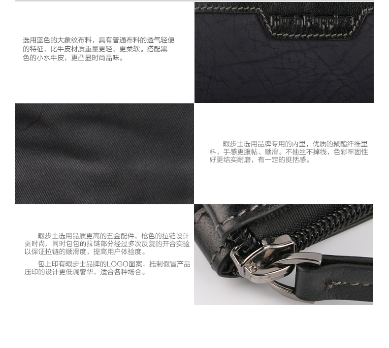 这款暇步士手包外形为经典的信封手包,设计简约,潮流感十足,商务休闲均可,顶端为头层的小水牛皮材质,质感十足,主料为高密度树纹布,手感柔软顺滑,持久耐用,所有五金件均为优质不锈钢材质,,质感十足,成熟男士出街的好选择。