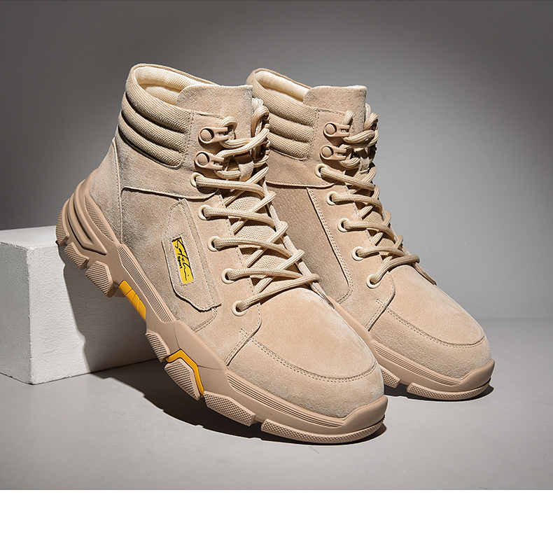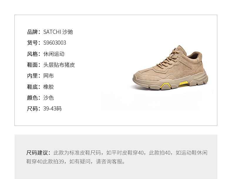 这款沙驰男士工装靴,19年新款,选用质感细腻的猪皮鞋面,透气舒适,点缀式撞色设计,更显活力动感,橡胶大底,缓震耐磨且防滑。日常休闲穿着很好搭配。也彰显动感时尚。