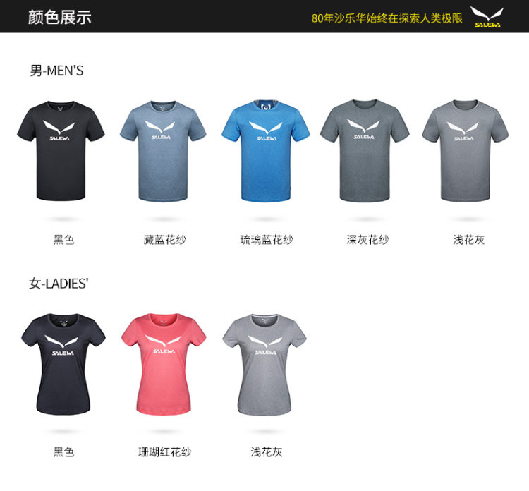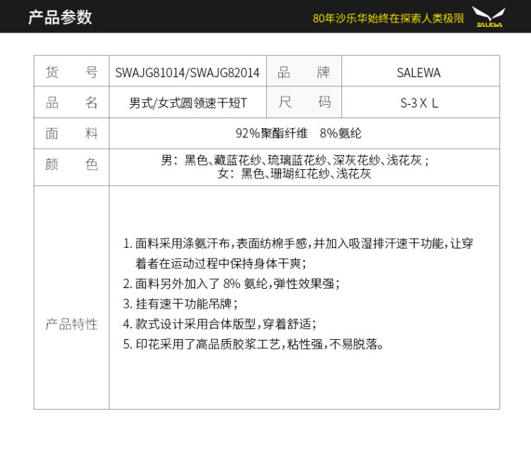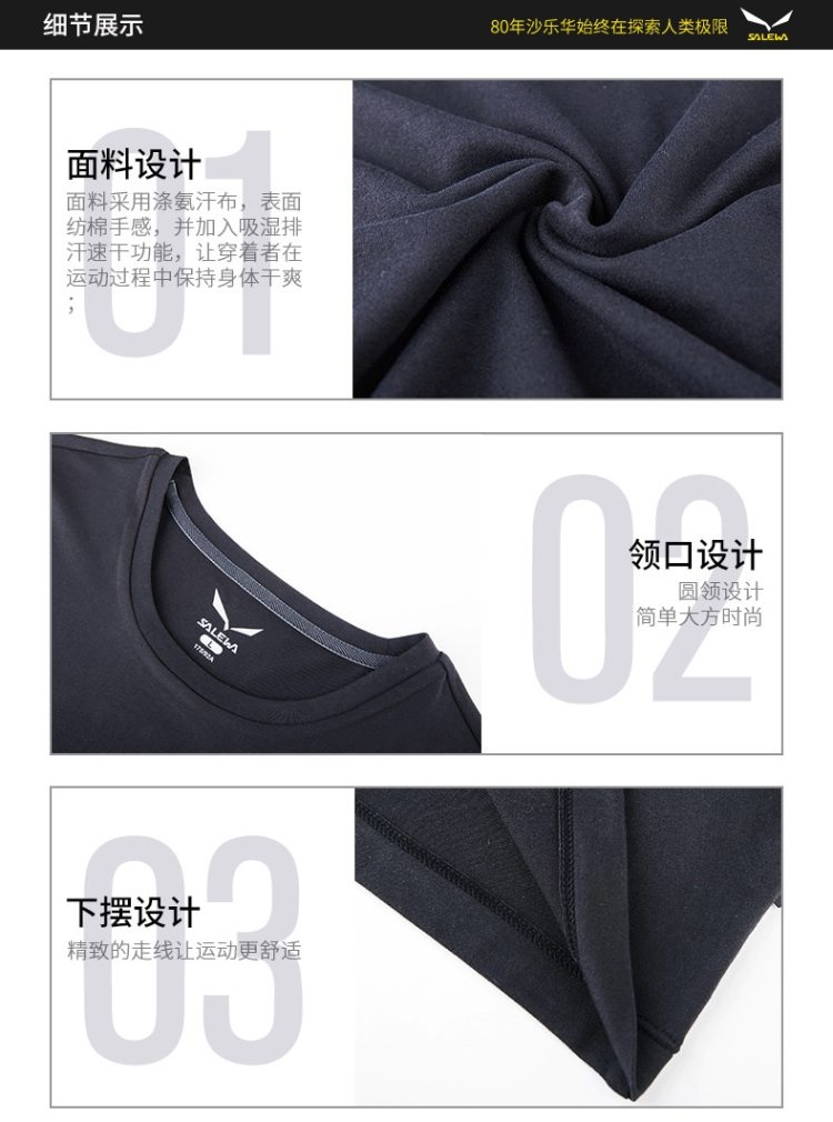 沙乐华的这款T恤,是2018年的夏季专柜款,户外功能速干面料,适合户外运动出汗多的时候穿,也适合爱出汗的人穿。