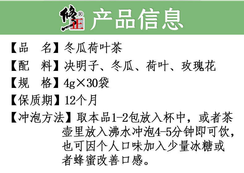 • 修正 冬瓜荷叶减肥茶 4g*30包 排毒养颜