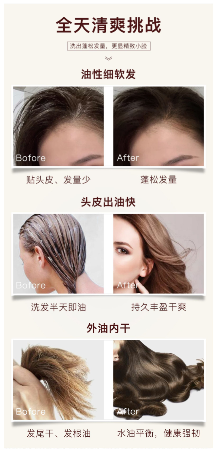 康绮墨丽 盈润清爽去油洗发水,专为烫染干枯发质定制,解决断发,掉发等多种发质问题,增加头发韧性,深层修复,让秀发润泽光亮。