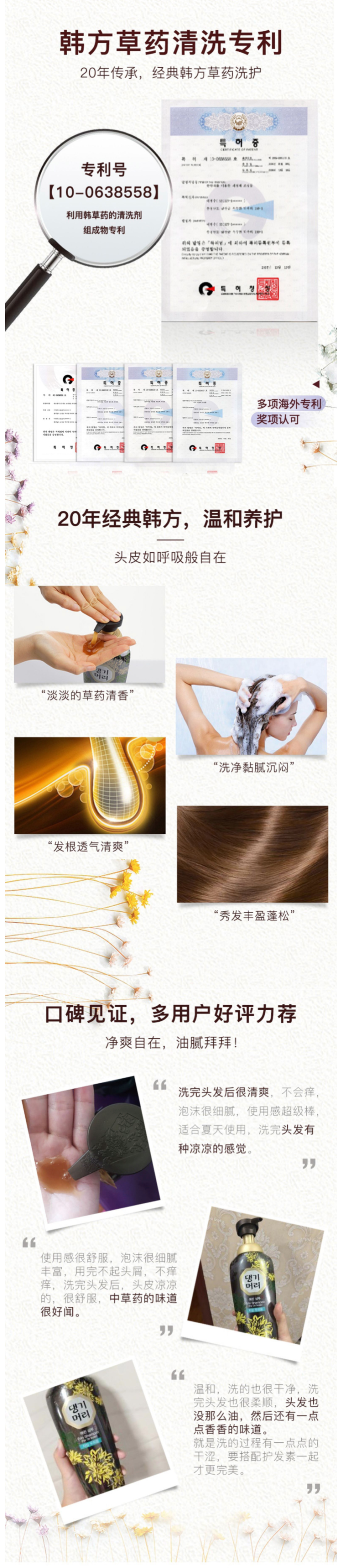 这款康绮墨丽,韩国进口,是今年7月上市的新品,纯天然有机提取物配方,多达9种药材萃取制作而成,零人工色素、零化学腐蚀性物质,规格是500ml。