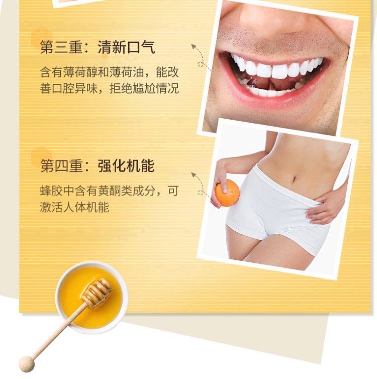 蜂胶具有抗菌、抗病毒、抗氧化、增强抗病能力、抗肿瘤、调节三高、抑制镇痛和局部麻醉、消炎和抗溃疡、美容的功效,可以说是好处多多,对无人无害。