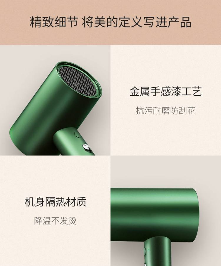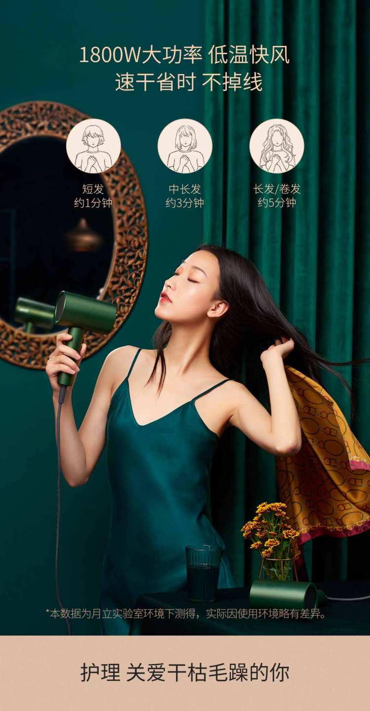 天猫小适旗舰店139元,可领30元优惠券,实付109元到手,这款负离子吹风机由小米生态链旗下企业生产,采用1800w平稳大扭矩高速电机,6叶流线扇应用流体力学,形成强劲气流,低噪降音,快速自然干发,短发约1分钟、中长3分钟、长发卷发约5分钟。还有2000万级高浓度负离子,能锁住头发水润,中和静电、抚平毛躁、闭合毛鳞片,告别干枯打结,干发更养发。