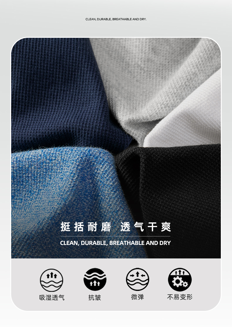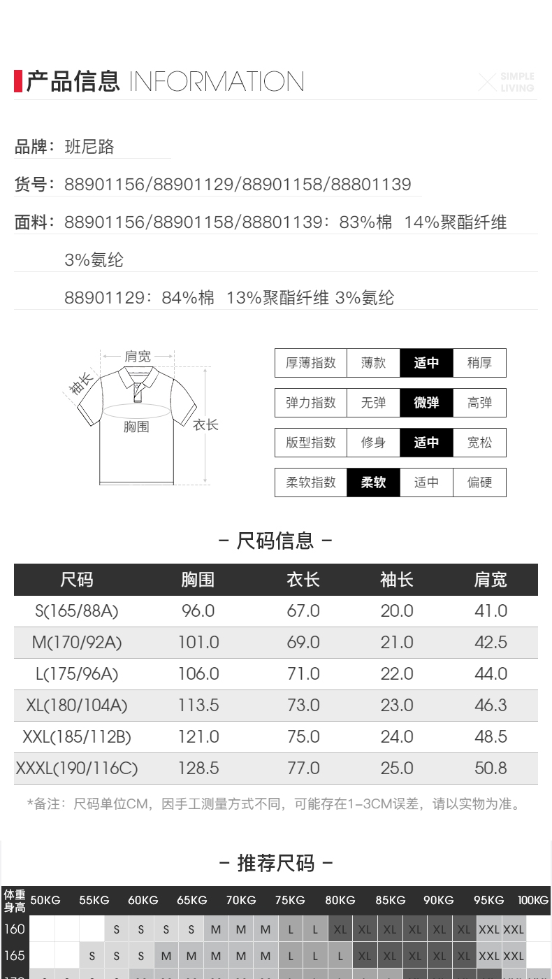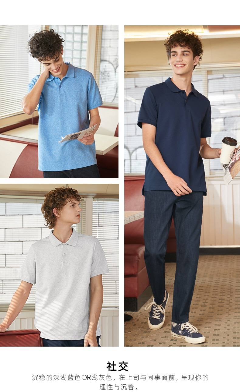 修身版型,利落板正。衣领、袖口和下摆均采用螺纹设计,水洗不易卷边变形。简约纯色款式,休闲商务都适合穿。
