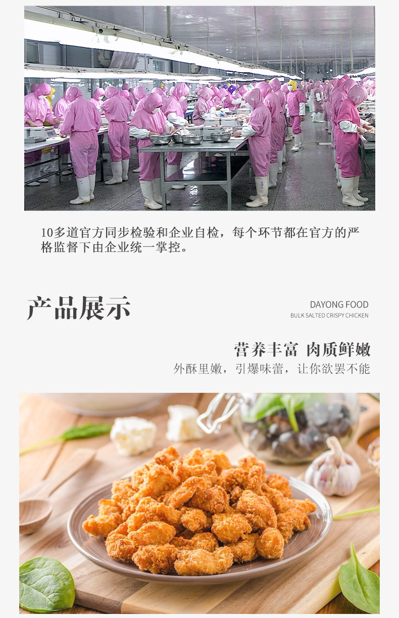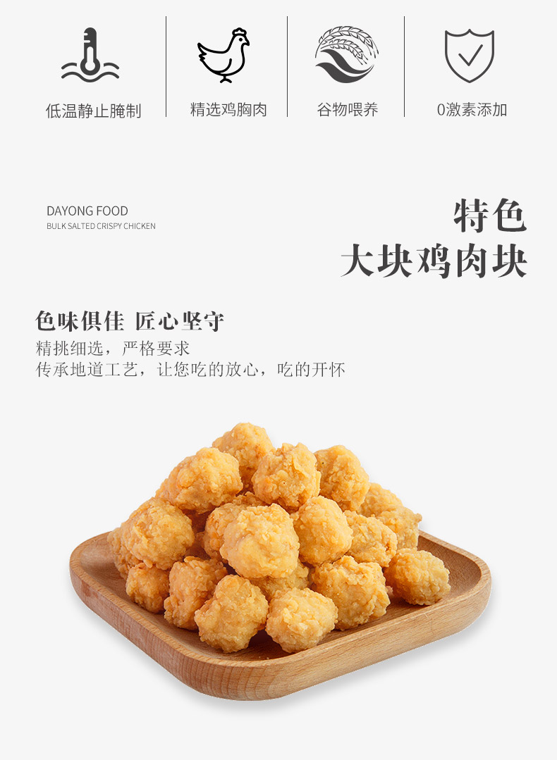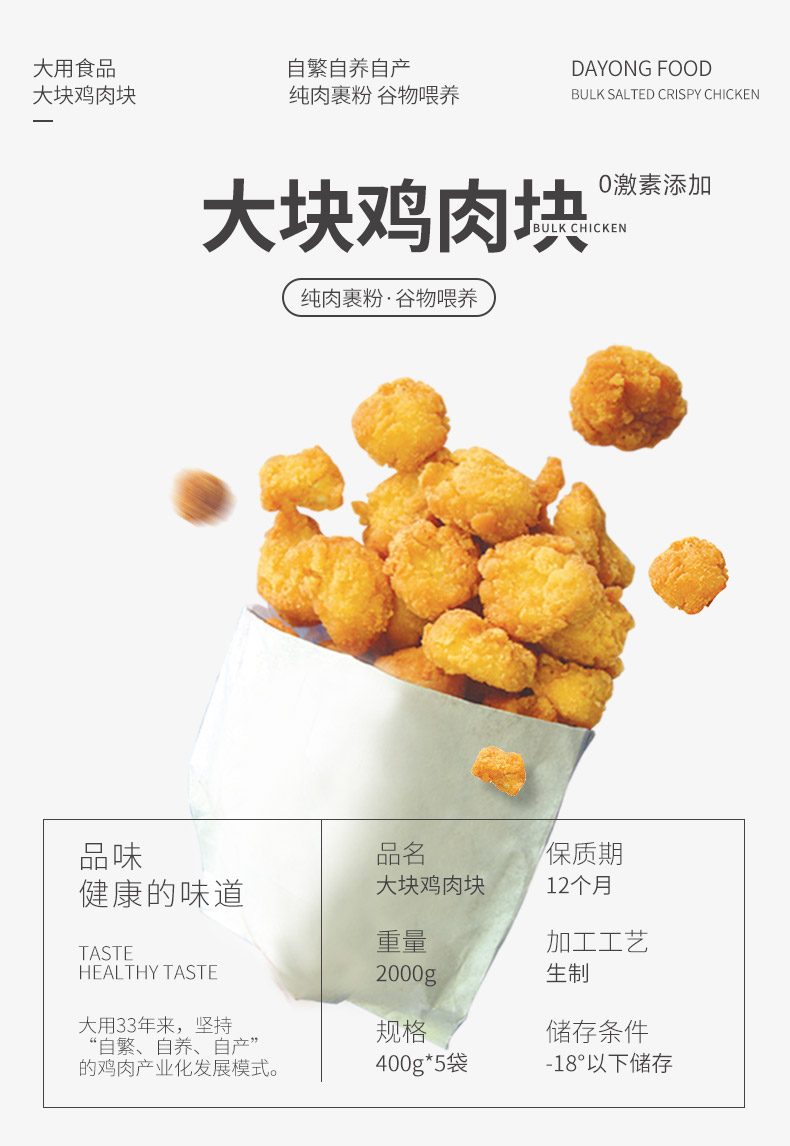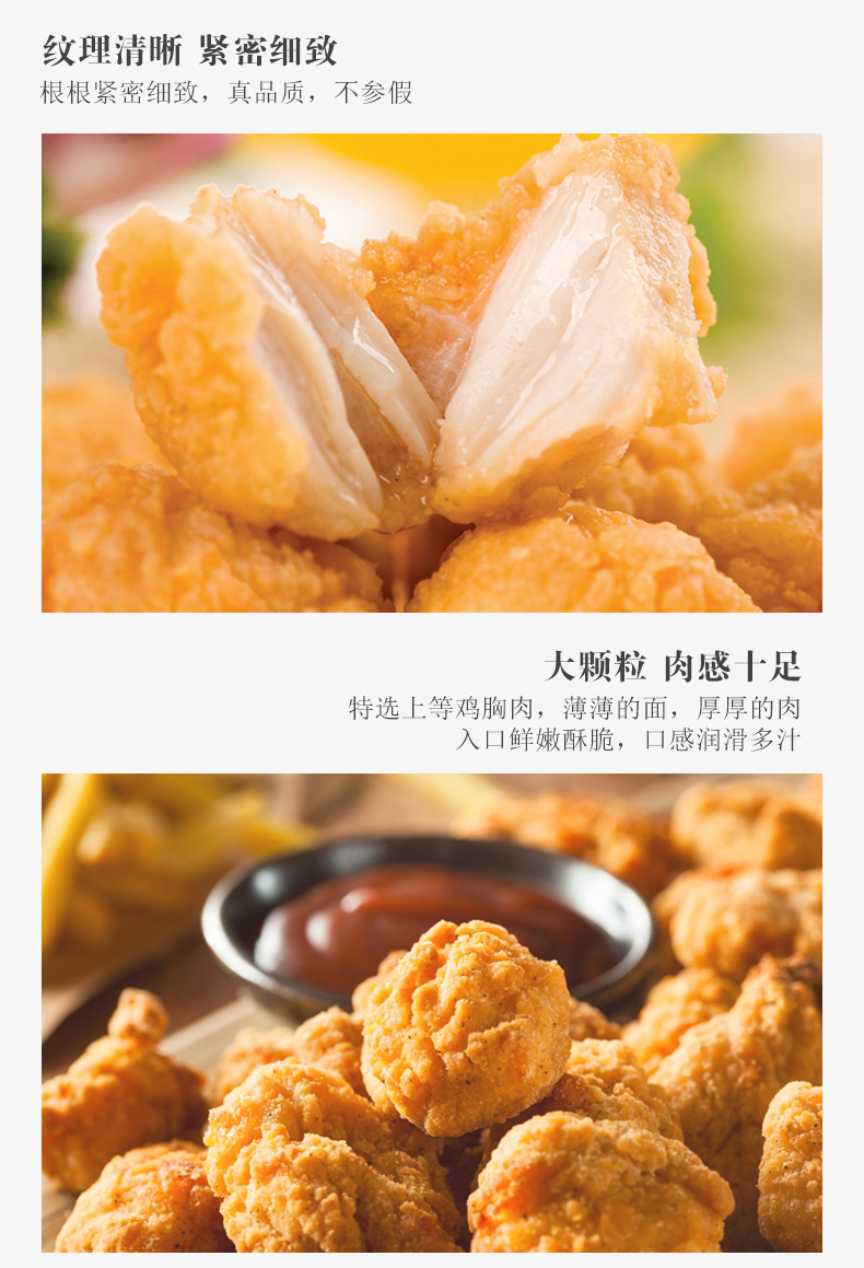 =45元 到手价,400g*5袋,共4斤。德基专用半成品上校鸡块 鸡米花,外酥里嫩,口感微辣。制作简单方便,可直接炸制、烤箱烤制等多样吃法,5分钟美味端上桌,大块鸡肉。肉质鲜嫩,纹理清晰,风味浓郁,可做休闲小吃,也可商用。