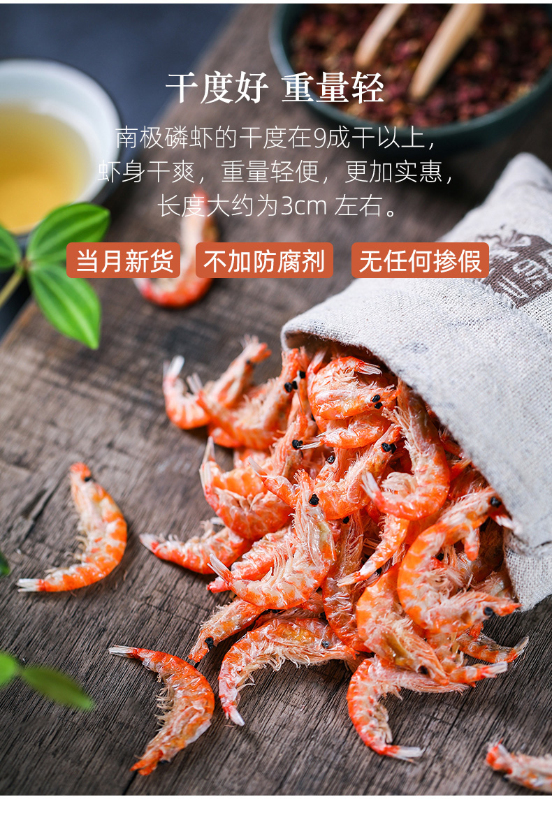 南极磷虾是熟的,加工过程中未添加防腐剂,烹饪前只需简单清洗一下即可。盐味轻,不需要长时间泡发。用来煲粥、煮汤、炒菜、调饺子馅等都很美味。