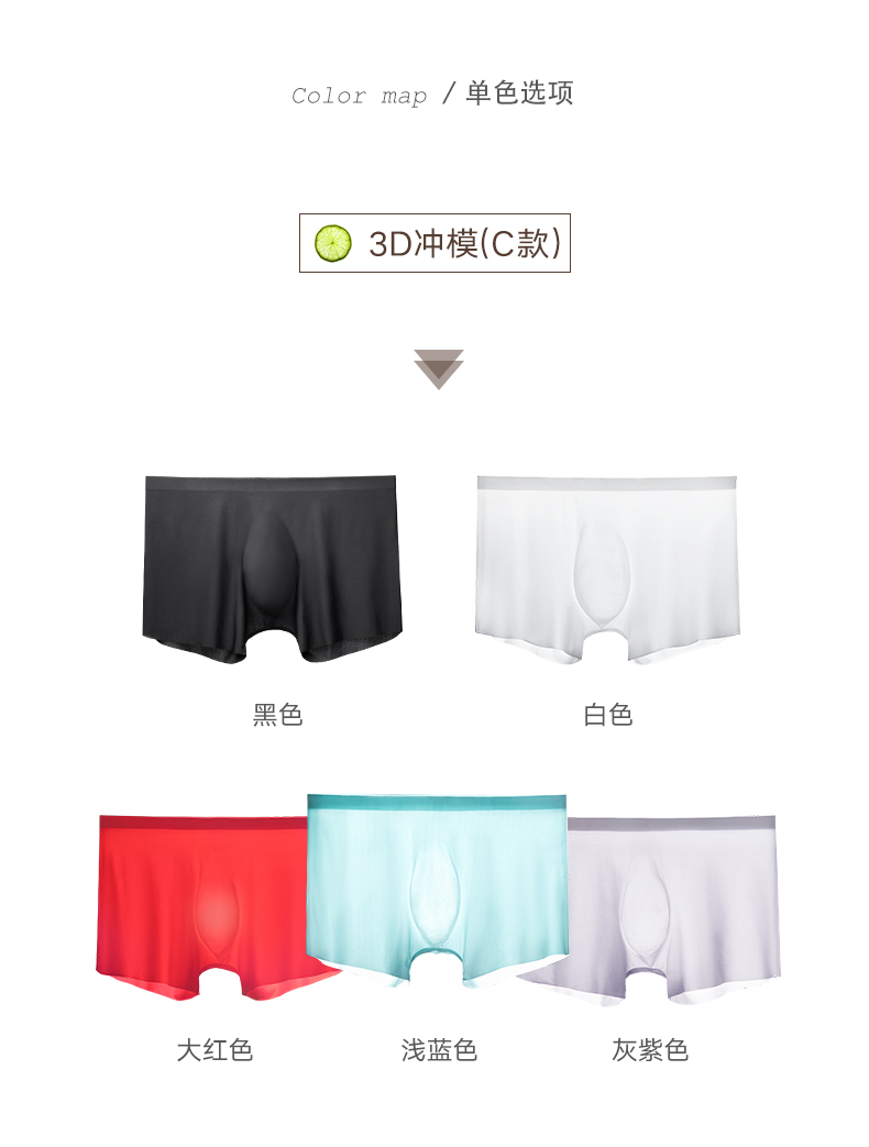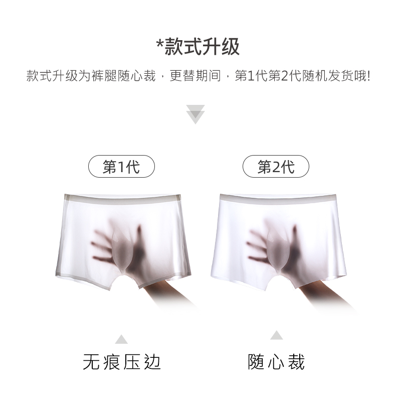这款冰丝内裤,最适合夏季穿着,上身有凉感,如同肌肤般轻薄透气,采用超细冰丝面料,薄如蝉翼,50%透明,99%透气,柔软丝滑,穿着舒适,无痕无感。囊袋为3D冲模一体成型,舒适无感。3D冲模工艺使得前裆处没传统的车缝线,一片式无侧缝裁剪,侧边没有缝合线,真正的无痕无感,绝佳的舒适体验。