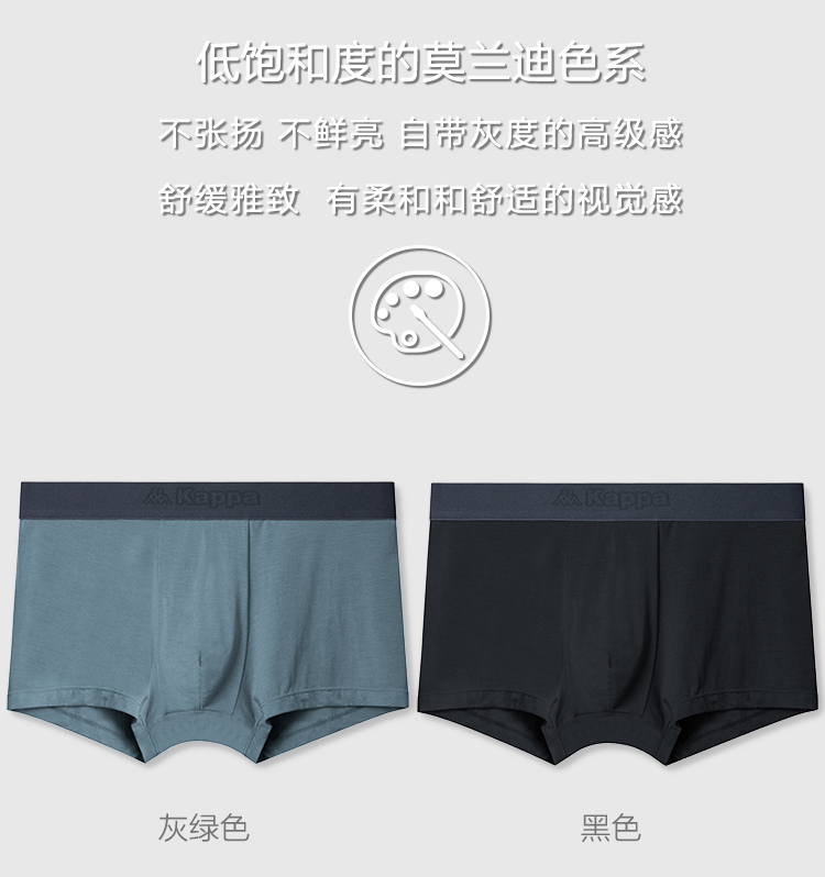 这款Kappa男士莫代尔内裤,创新平角版型,外层92%莫代尔纤维+8%氨纶混纺面料,档内里是抑菌内衬,采用16针/英寸的高密针缝合工艺,紧密亲肤。