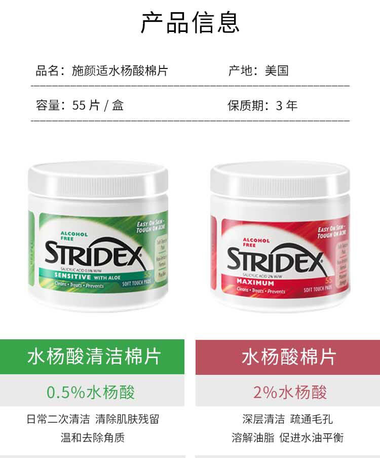 Stridex水杨酸清洁棉片始于1956年,是美国市场上第一款安全有效,无需医生处方的清洁去痘棉片,作为一款有历史积淀的,经典有效的水杨酸2004年也被美国国家历史博物馆永久收藏,在欧美国家畅销60年后,2017年由韩国olive young引入韩国市场,实现了日均销售2000罐的神话。